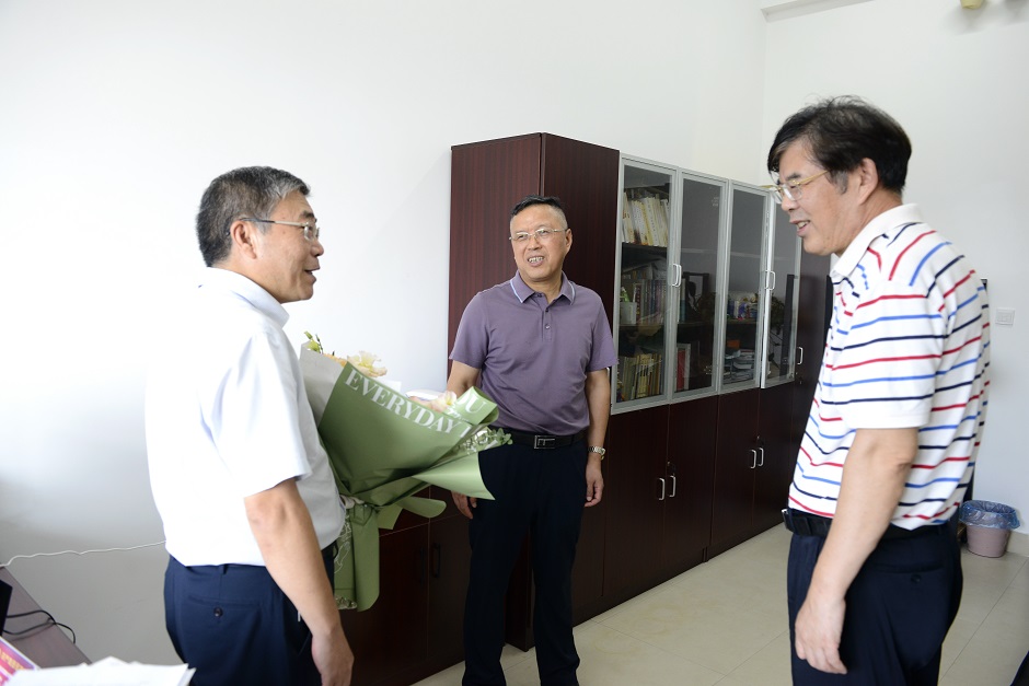 王仁雷、王建分别赴文学院、生命科学与化学化工学院看望冯保善教授和蒋功成教授,并送上鲜花,感谢他们为学校建设发展做出的杰出贡献,希望他们继续发挥自身优势,勇攀高峰、再创佳绩。校领导表示,站在建校70周年的历史新起点,校党委和行政将始终不渝地坚持尊师重道的优良传统,关心和支持教职员工的全面发展,努力为广大教职员工的学习、工作和生活创造更加理想的条件和更加和谐的氛围,使每一位江苏二师人共享改革发展成果,凝心聚力共同谱写学校高质量发展新篇章。