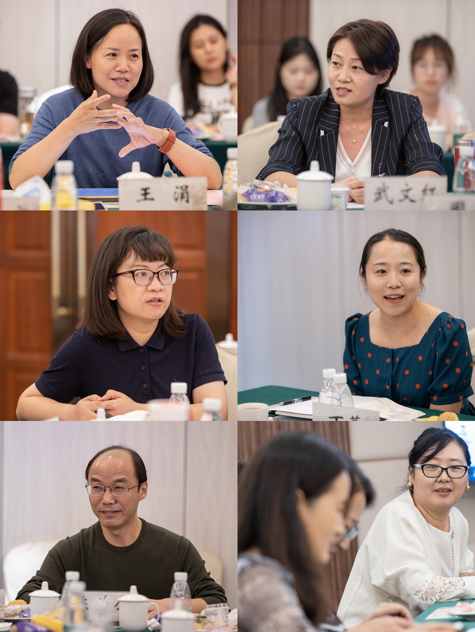 自由研讨阶段,参会的南京市六位音乐一线骨干教师琅琊路小学王涓老师、江北新区浦口外国语学校陈萍老师、玄武高级中学梅园校区丁蕾老师、芳草园小学武文红老师、南京市第三高级中学文昌初中盛虹老师和江苏省六合高级中学陈为公老师分别交流了他们对卓越音乐师资培养的看法和体会,并与学生代表就具体问题进行了充分的互动。