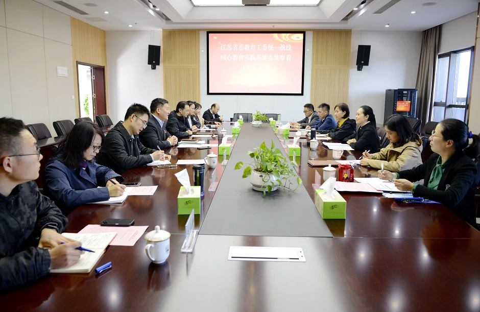 10月10日下午,省委教育工委专家组来我校实地察看统一战线同心教育实践基地建设情况。专家组由南京信息工程大学党委常委、统战部部长陈涛,南京工业大学党委统战部常务副部长周辉,南京理工大学党委组织部、统战部副部长丁荣伟,南京审计大学党委统战部副部长倪桓组成。省委教育工委统群处处长张晓宁、省委教育工委统群处四级调研员姜倩倩一同参加现场指导。校党委副书记潘文主持汇报会并致辞,组织部、统战部部长张其飞、副部长眭春良,学校各民主党派基层组织、统战团体负责人参加汇报会并陪同考察。