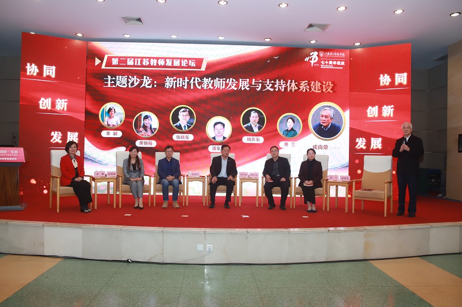 论坛还邀请到来自教育行政部门、教育科研院所、高等院校、教师发展机构的相关同志、教师教育专家以及校长代表聚焦“新时代教师发展与支持体系建设”进行现场对话和交流。主题沙龙由国家督学、原江苏省教育科学研究所所长成尚荣主持。江苏省教育科学研究院教育发展研究中心主任张晓东研究员等出席主题沙龙。
