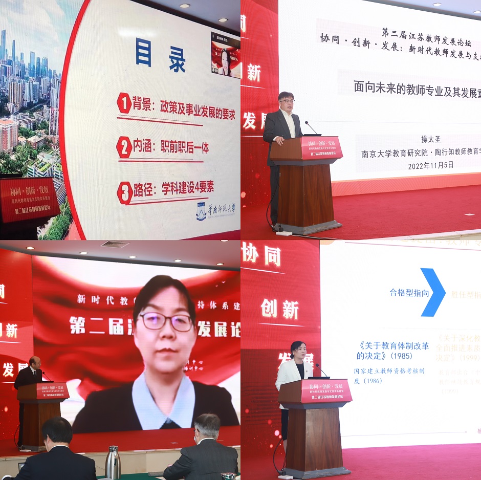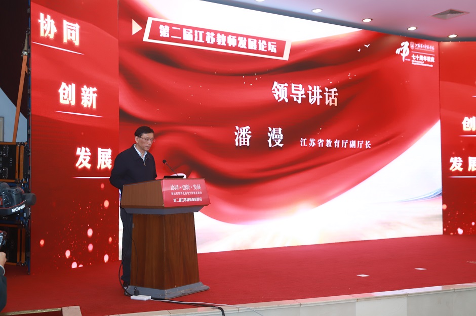潘漫对本次论坛的成功举办表示热烈祝贺。他指出,江苏紧紧牢记习近平总书记对教育和教师工作的嘱托与希望,始终坚持把广大教师作为教育发展第一资源,出台了关于教师队伍建设的系列文件,创建了江苏优秀教师培养培育的系列品牌,全省教师队伍综合素质、专业水平、创新领域持续走在全国前列。他希望我校在建校70周年的新起点,为我省率先实现教育现代化做出更大贡献。