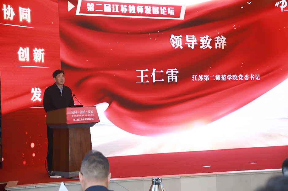 王仁雷在开幕式上致辞。他指出,第二届江苏教师发展论坛作为我校建校70周年校庆的一项重要学术活动,既是深入学习党的二十大精神、深化教师管理体制机制改革的重要举措,也是我省高端教师培训工作的重要内容。他强调,教师是教育发展的第一资源。教师专业发展与支持体系的建构是高水平教师教育体系建设的重要一环,对于深化新时代教师队伍建设改革、整体提升中小学教师队伍教书育人素养、推进教师专业发展现代化进程具有重要的意义。他期待与会专家和学者聚焦“新时代教师专业发展与支持体系建设”的论坛主题,以党的二十大精神为统领,深入研讨,群策群力,为推动教师教育领域学术创新、推进新时代教师管理机制体制改革和教师队伍建设贡献智慧,共同形成有益于我省教师队伍建设的良策良方,写好新时代教师教育改革发展的历史答卷,为加快大国良师培养贡献力量。