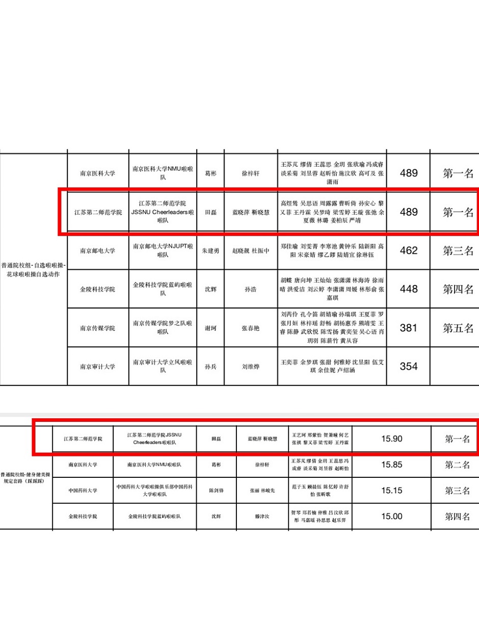 我校21名运动员参加此次比赛,最终获得花球啦啦操第一名、大众健身操第一名的好成绩。