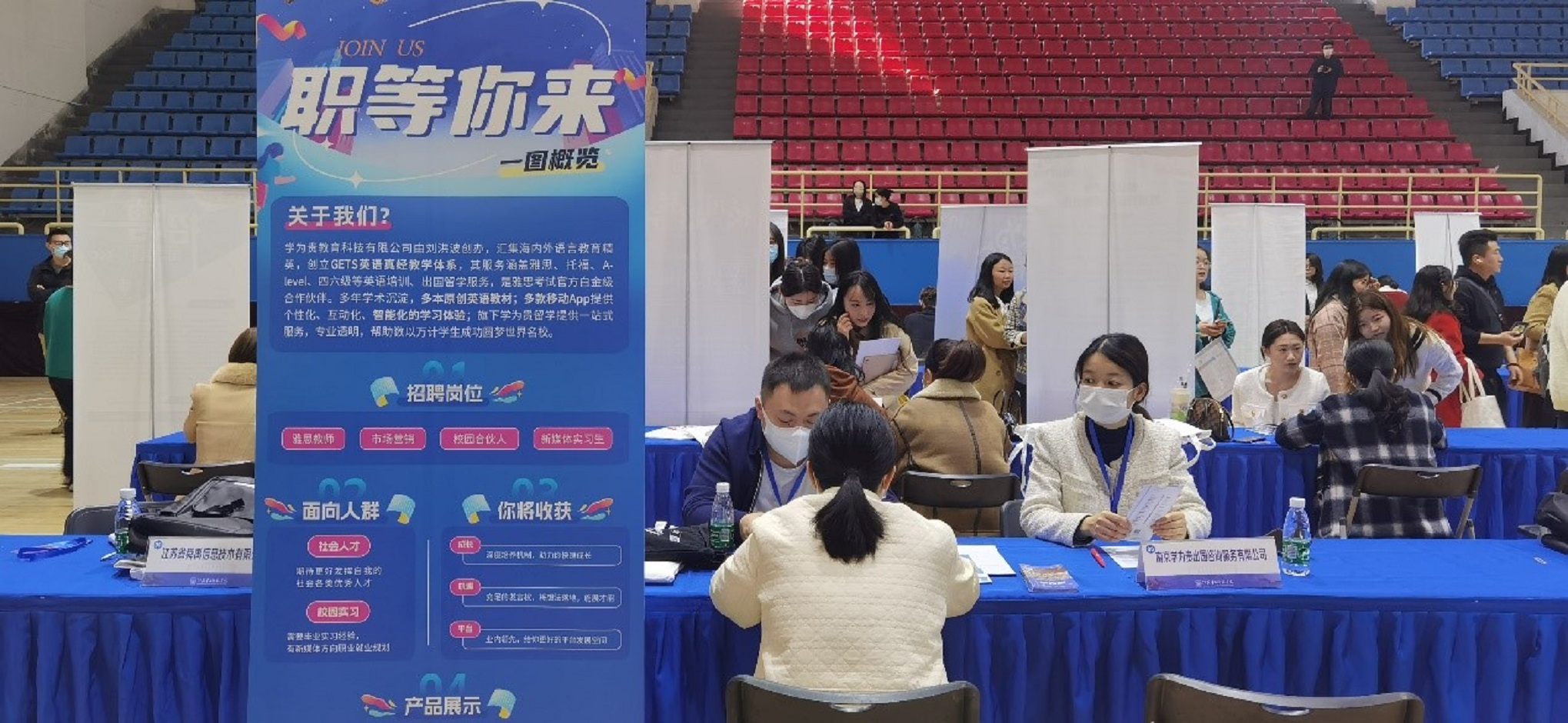 本次招聘会吸引了包括南京健康职业培训学校、南京保利大剧院管理有限公司、南京新街口百货商店股份有限公司、南京世茂滨江希尔顿、南京未来物联科技有限公司在内共计34家秦淮区、建邺区重点企业参加,涵盖职业教育、计算机信息技术、生物医药、商贸、住宿餐饮等领域,涉及教育类、贸易类、酒店管理类、计算机类、生物类等相关专业,为我校毕业生提供近140个岗位,需求人数400多人。