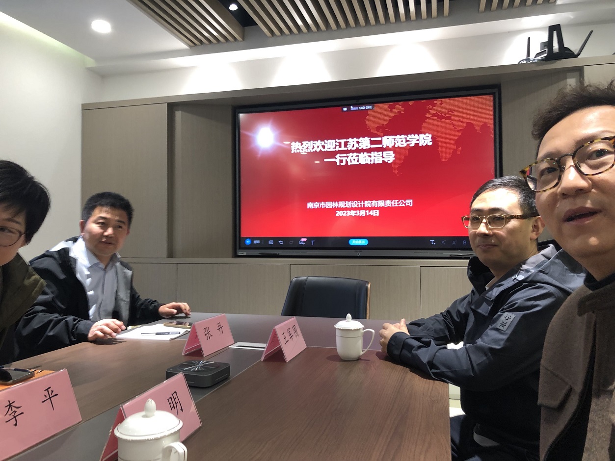 3月14日上午,美术学院路明院长带队赴南京市园林规划设计研究院股份有限公司开展实习实践基地建设调研考察,双方就人才培养、产教融合、学科发展以及项目合作等内容进行了深入交流。美术学院党总支王玲玲书记,专业教师薛岩、王军围一同参与调研。