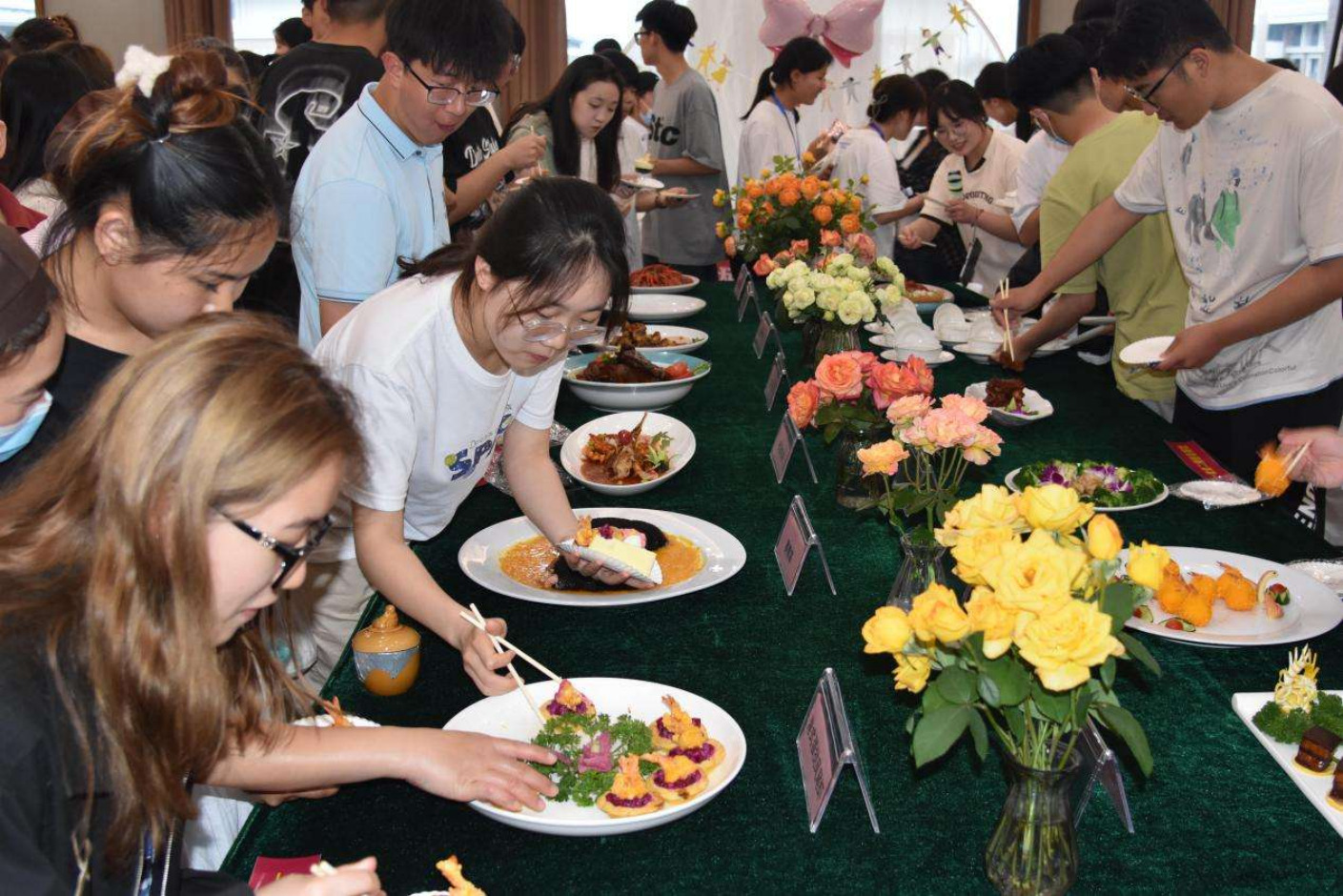 活动中,来自11个学院的学生们准备了22道各具特色的菜肴,现场展示他们的烹饪本领。他们通过创意构思,将家乡的味道融入菜品,展现了对家乡的热爱和对中华优秀传统文化的传承。在烹饪过程中,既能锻炼动手能力和创造力,又培养团队合作精神和沟通能力。