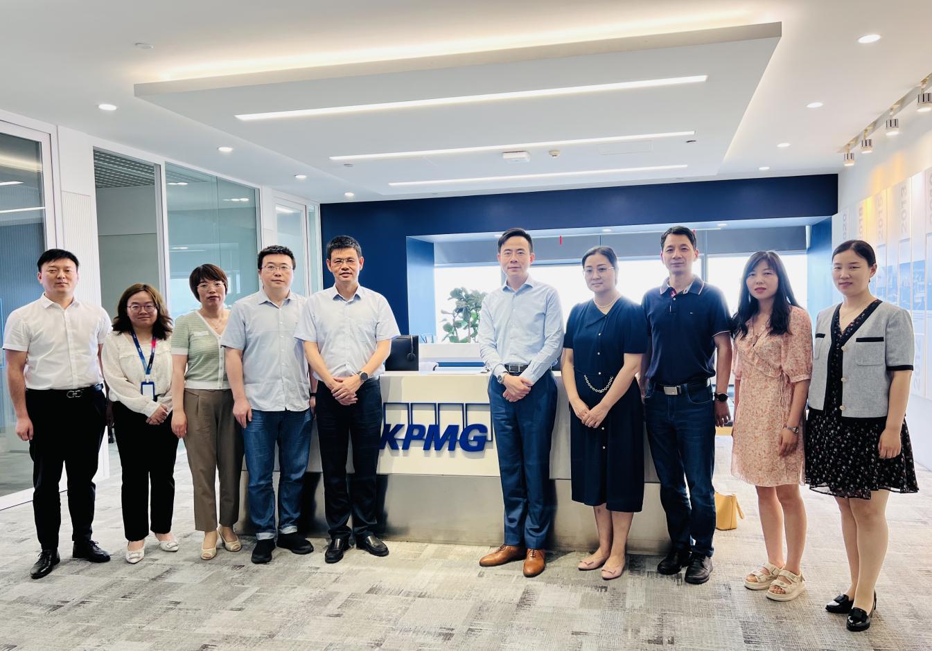 为了促进商学院学生高质量实习、就业,近日,在刘贵友副校长的带领下,招生就业处司南处长、李佶莲副处长,商学院孙爱军院长、党总支书记张淼等一行8人,来到鼓楼区苏宁慧谷大厦,访问了国际四大会计师事务所之一——毕马威会计师事务所南京服务中心。