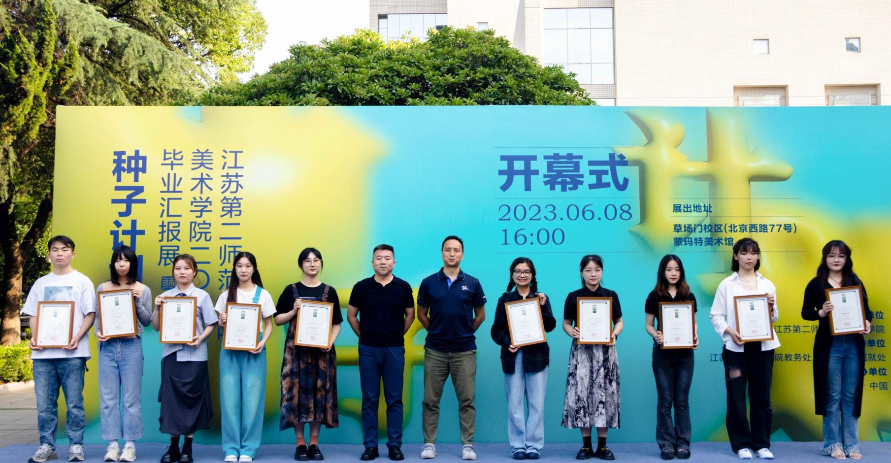 优秀毕业生代表、第11届江苏省师范生教学基本功大赛个人全能获得者侯佳一同学发言;美院教师代表、蒙玛特美术馆执行馆长李岩老师发言。江苏省美术家协会副主席、南京大学艺术学院副院长陆庆龙教授致辞,陆教授高度评价美院活跃的专业氛围,并期待毕业生能够多创作国家和人民需要的美术作品。之后,开幕式进入颁奖环节,第一项是黄显之艺术奖学金,由南京理工大学设计艺术与传媒学院院长徐伟教授宣读2023年度黄显之艺术奖学金收藏名单、优秀奖名单,黄载文教授、袁晓黎教授、封加樑教授和吕少卿教授分别为获奖同学颁发证书。第二项是蒙玛特学院奖,由杨思贤处长宣读2023年度蒙玛特学院奖获奖名单,由马先明先生、陈锋利先生为获奖学生颁发证书。