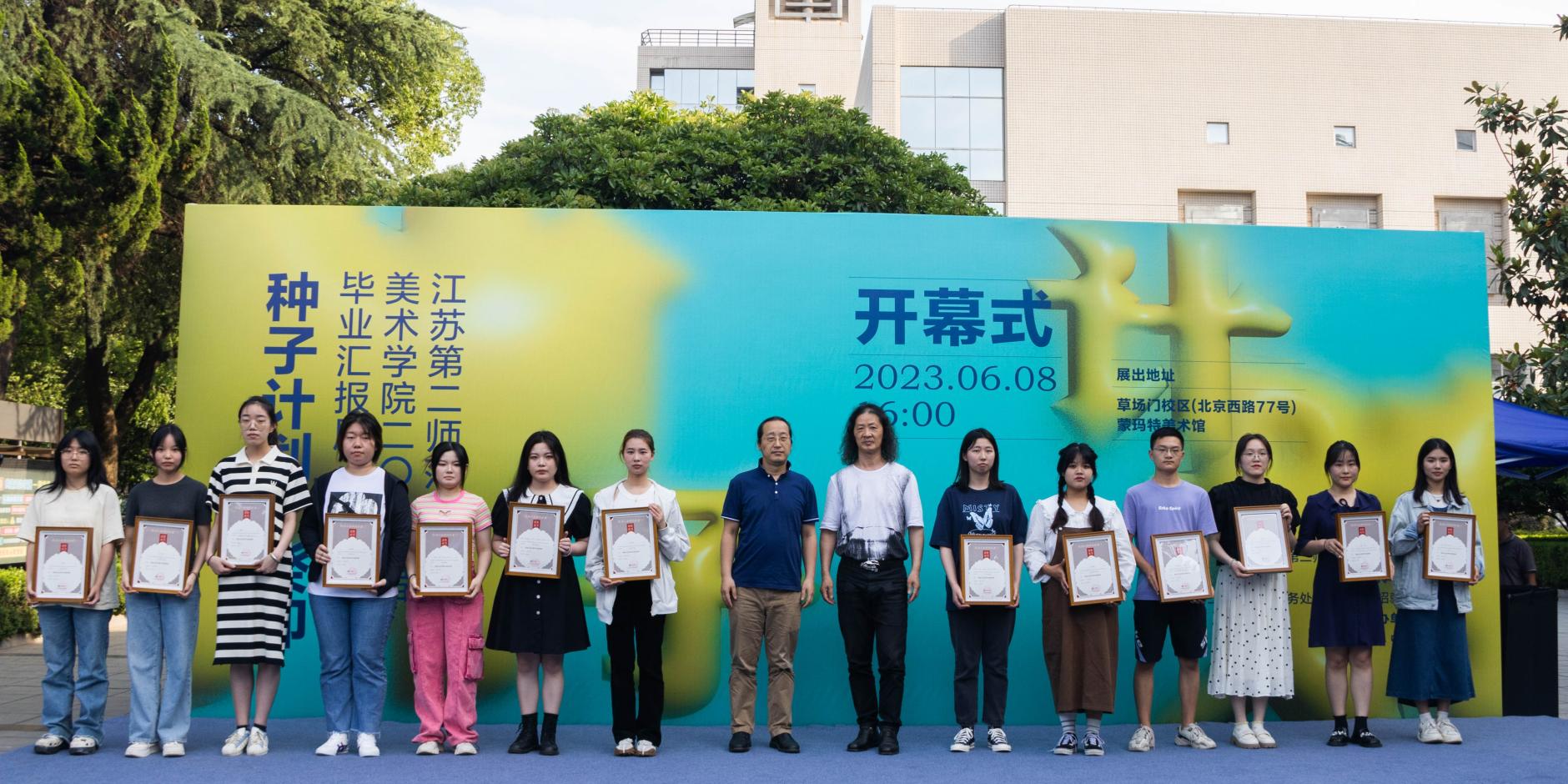 6月8日下午,我校美术学院“种子计划·癸卯”——美术学院2023届毕业汇报展在草场门校区隆重开幕。校党委常委祝兴成副校长到场祝贺,并对美院毕业生提出殷切期望。南京传媒学院副校长袁晓黎教授、南京大学艺术学院副院长、江苏省美术家协会副主席陆庆龙教授、南京艺术学院研究生处处长吕少卿教授、南京师范大学美术学院院长封加樑教授、南京艺术学院设计学院院长蒋杰教授、南京理工大学设计艺术与传媒学院院长徐伟教授、南京林业大学艺术设计学院院长祝遵凌教授、南京艺术学院艺术研究院副院长翁再红教授、南京信息工程大学艺术学院副院长曹爱华教授、南京特殊教育师范学院美术与设计学院院长赵健教授、蒙玛特(中国)副总经理马先明先生、南京市园林规划设计院有限责任公司副总经理李平女士、南京大颂博览文化科技有限公司董事长陈锋利先生、江苏秋恒文化创意产业有限公司董事长曹颖女士、南京中智文化创意研究院院长王波先生等嘉宾出席开幕式。