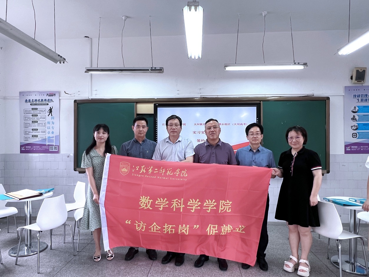 为进一步开拓数学科学学院大学生实践基地,搭建校企精准合作平台,助力学生高质量稳就业,7月7日上午,校党委常委、副校长陈金如带队,数学学院党总支书记凌晓牧、院长卢涛、副院长陈波、学工办主任葛静一行赴天河教育科技发展南京有限公司开展访企拓岗专项活动,并举行大学生实践基地签约授牌仪式。