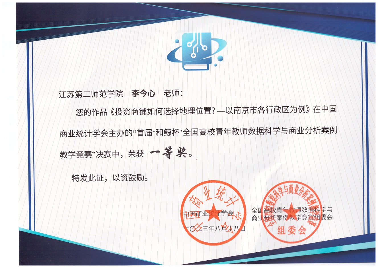 经过激烈角逐,李今心老师作品《投资商铺如何选择地理位置? ——以南京市各行政区为例》获得本届大赛总决赛冠军(一等奖第1名)。该案例运用贴近实际且富有趣味的案例,巧妙引入课堂话题,逐步引导学生深入思考,互动性强。无论是案例还是教学方法,都与核心内容DCOVA分析框架紧密匹配,层层递进,教学过程互动有趣,令人深受启发。强调培养学生发现、思考和解决问题的能力,全面提升教学效果。决赛采用现场会评方式。参赛教师需现场完成说课(解说案例教学设计,时长5分钟)、授课(案例教学和演示代码文档,时长20分钟)和答辩(时长5分钟),由评审专家进行现场综合评分。