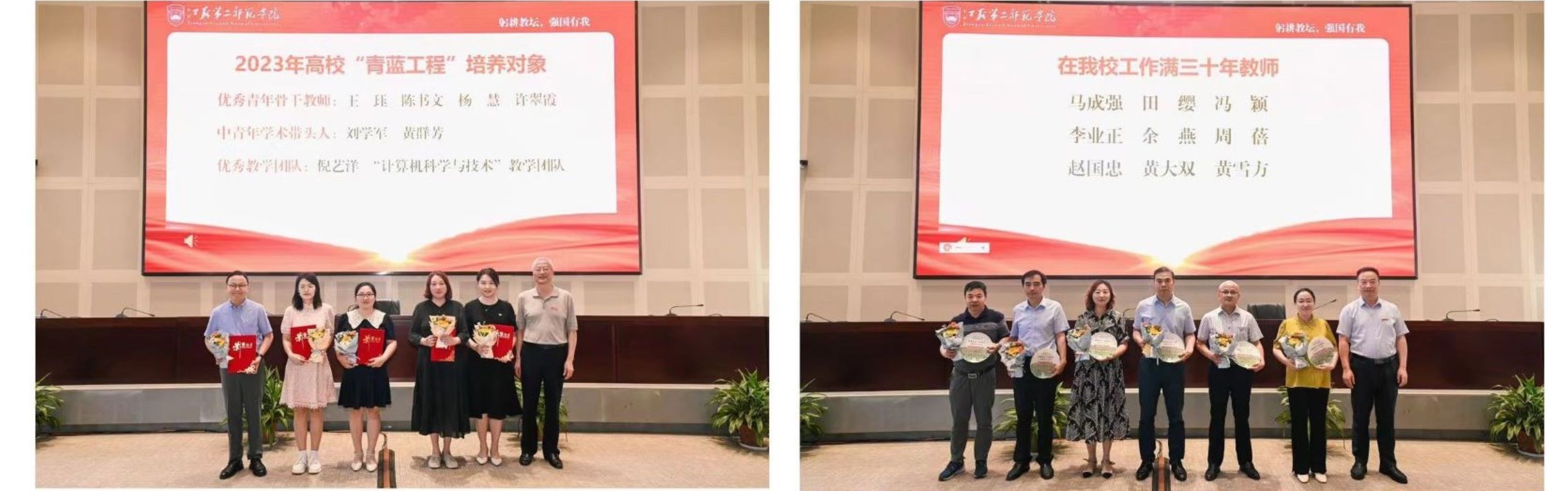荣休教师代表邓子勉、从教30年教师代表张庆、国家级教学成果奖获奖代表尹坚勤发言。他们结合个人经历,回顾从教以来的辛勤印记,表达对学校支持个人发展的由衷感谢,展望学校高质量发展的远大前景。