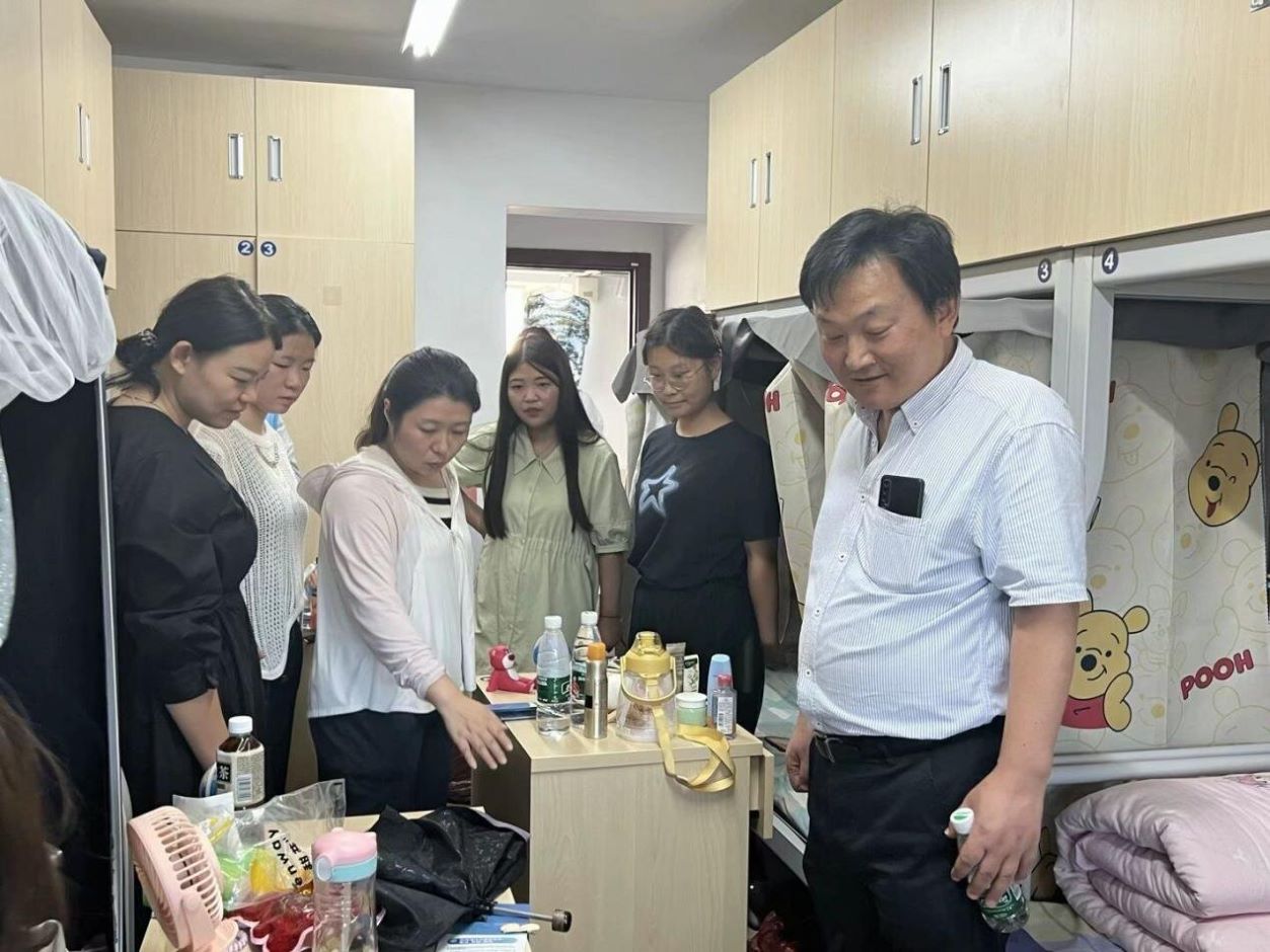 地科院党总支书记徐孝彬和学工办主任秦丽娟带领23级新生辅导员、班主任和院学生会主席团对石湫和草场门两校区新生宿舍进行一一走访。徐孝彬叮嘱新生要好好学习,要树立远大志向,要做好职业规划,要成就梦想。辅导员和班主任为新生答疑解惑,祝愿新生们够在未来的四年中过得充实而又美满,不负青春年华。