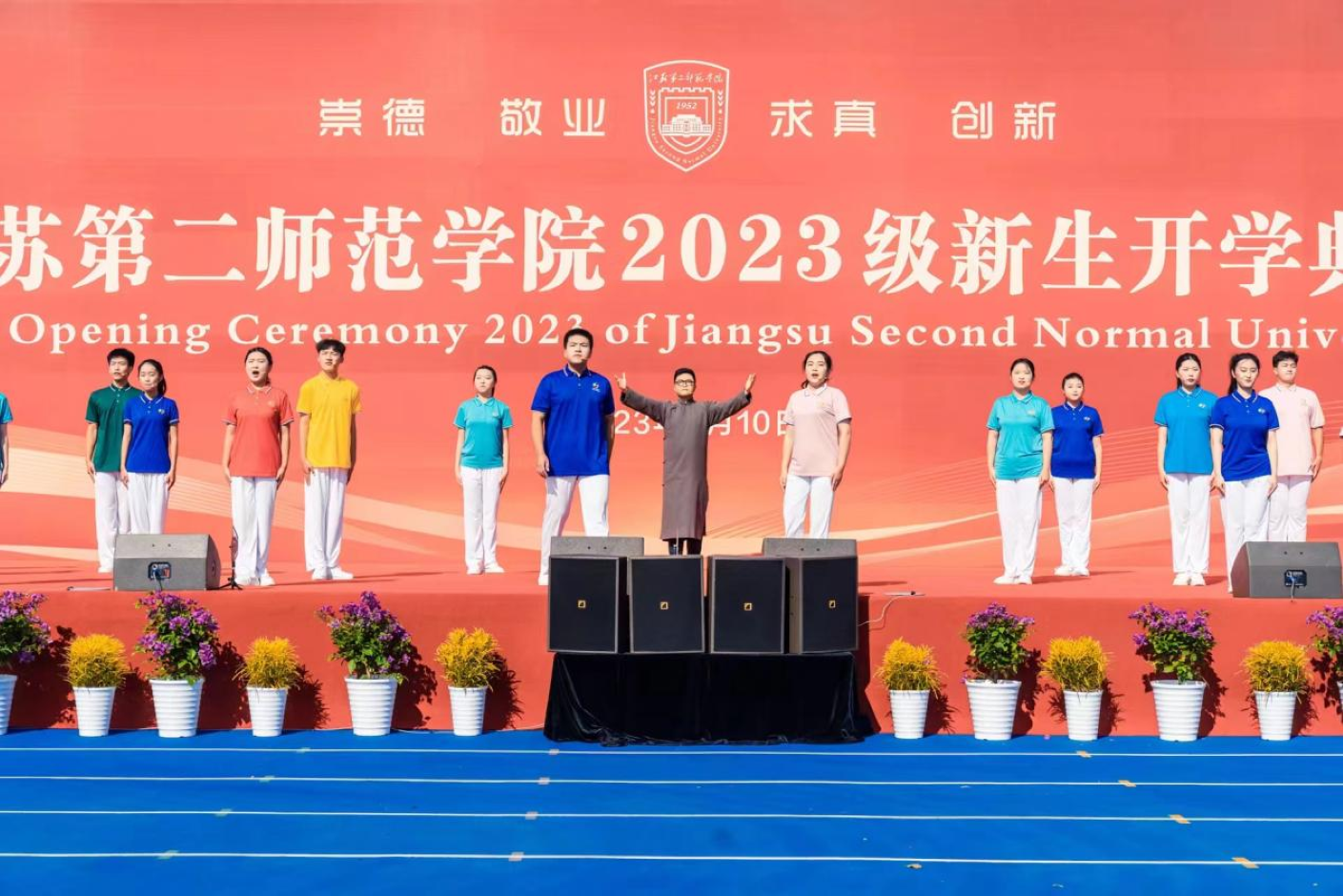 江苏第二师范学院校党委书记王鲁沛、校长徐国华等校领导,各职能部门、二级学院负责人,教师代表、学生代表、家长代表,以及全校4000多名2023级新生,共聚一堂,欢庆第三十九个教师节,学习习近平总书记致信精神,大力弘扬教育家精神,开启躬耕教坛、强国有我”新篇章。