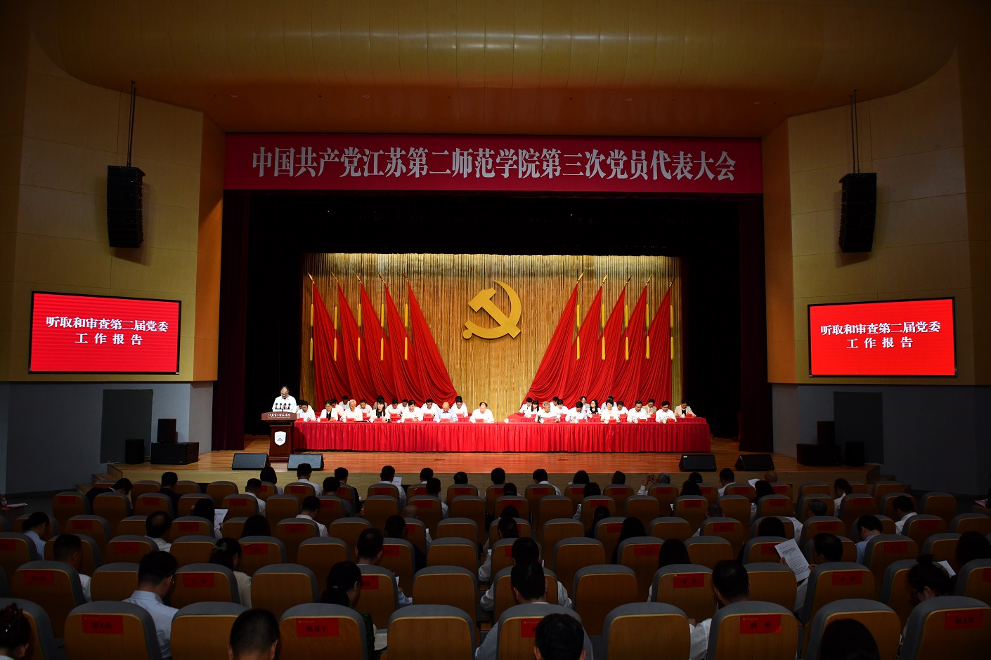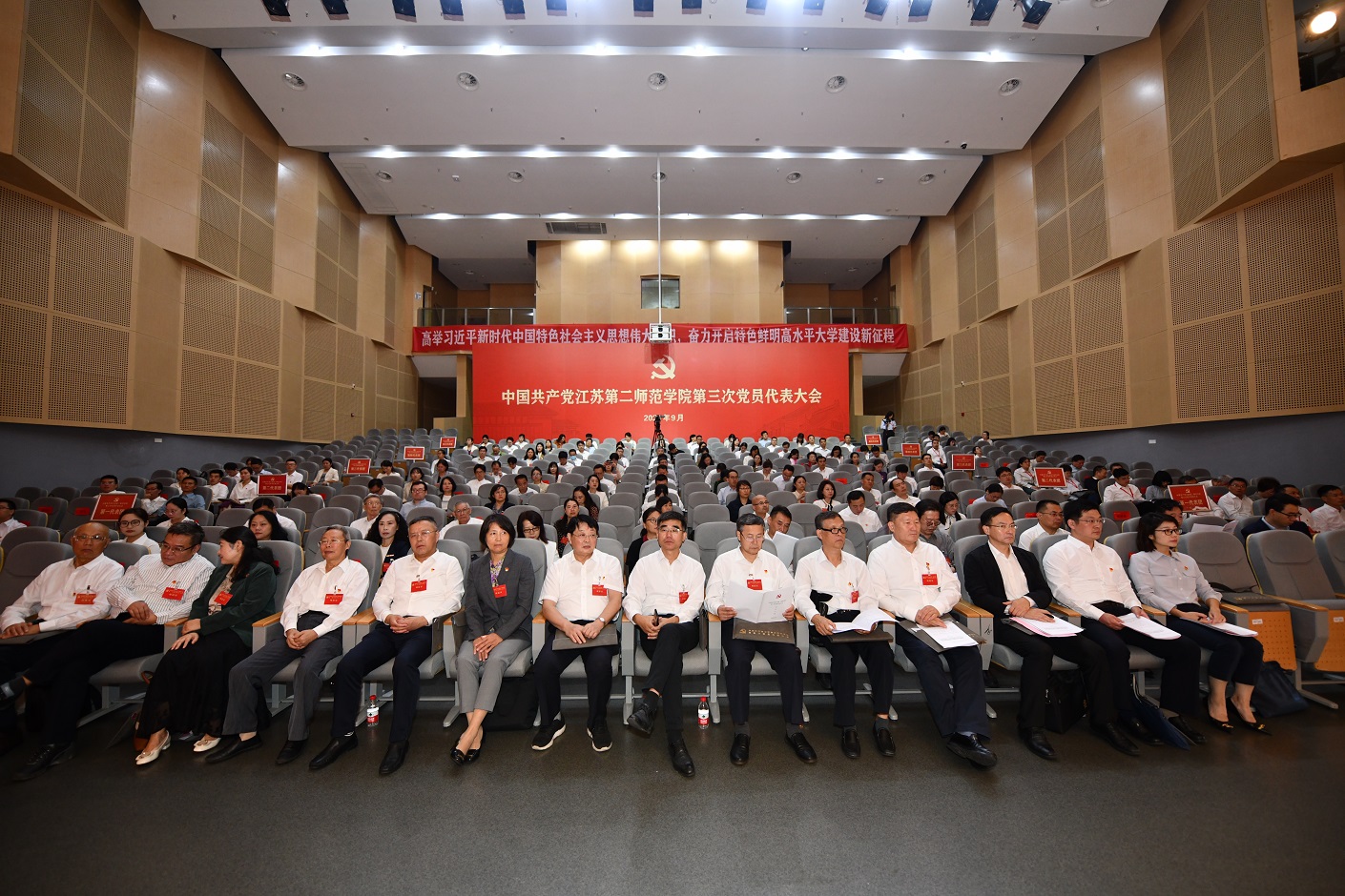 9月25日上午,中国共产党江苏第二师范学院第三次党员代表大会在石湫校区尚美楼报告厅开幕。