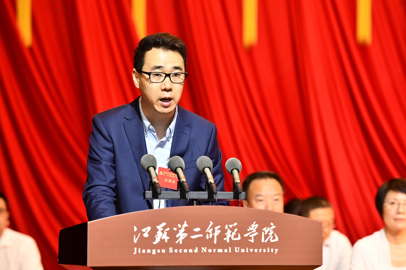 大会应出席代表129名,实到125名。省委督导组组长、扬州大学原党委书记姚冠新同志率督导组全程指导监督。省教育厅副厅长、党组成员、省委教育工委委员袁靖宇出席开幕会并讲话。原党员校领导,校第二届“两委”委员代表,区以上“两代表一委员”及中层以上干部列席大会。非党员校领导,校民主党派、统战团体主要负责人,老同志代表等应邀参加了大会。