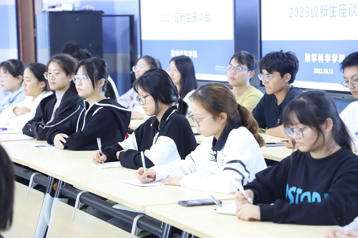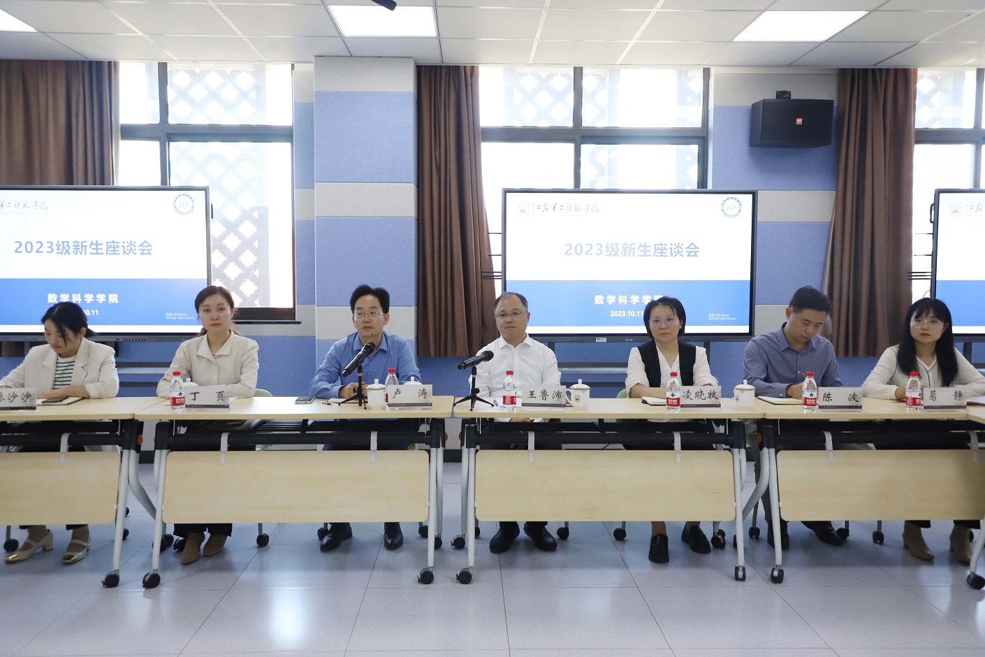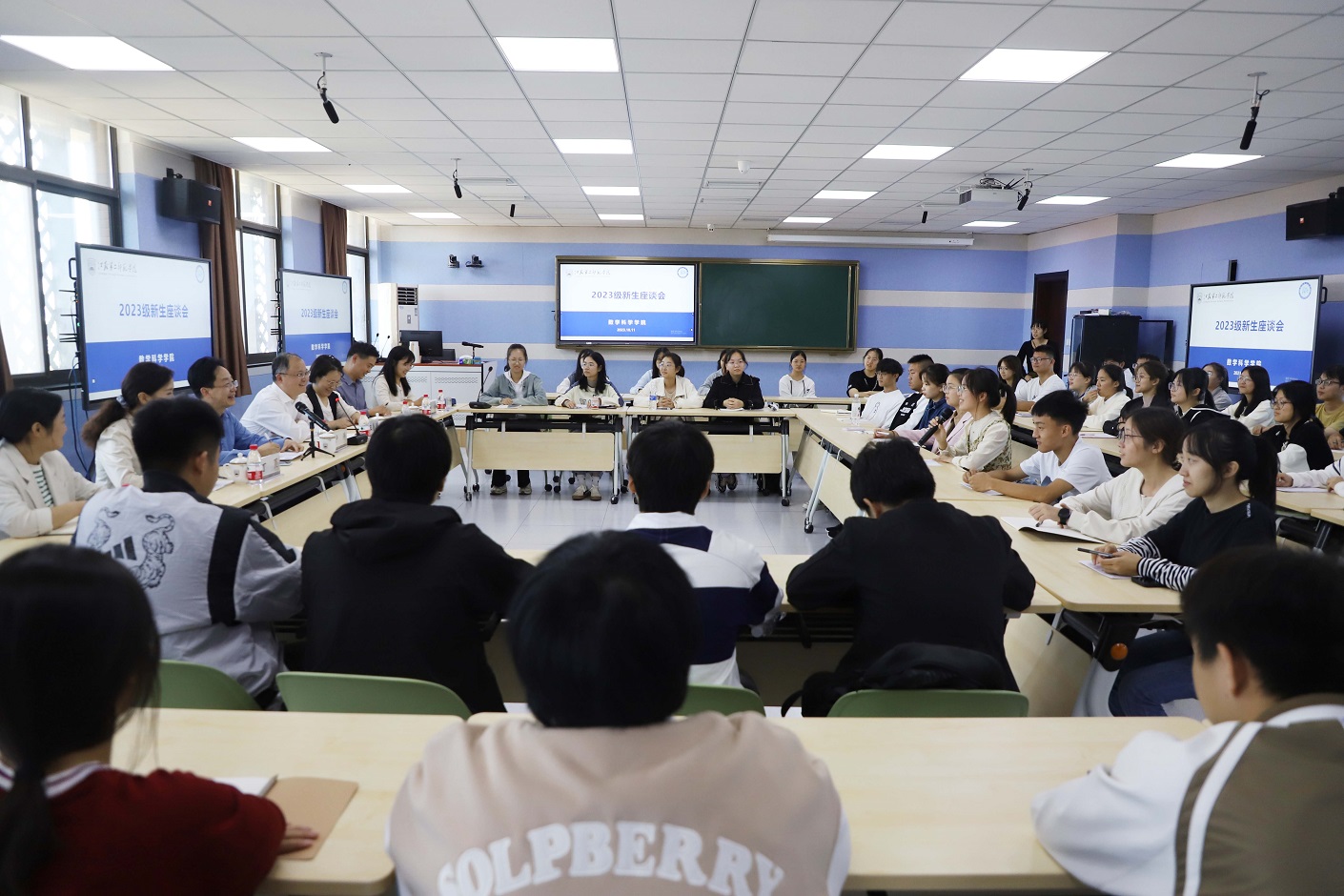 10月11日下午,校党委书记王鲁沛与数学科学学院2023级新生代表交流座谈,数科院党政负责人、学工处处长助理以及本科生辅导员参加了本次活动。座谈会由卢涛主持。