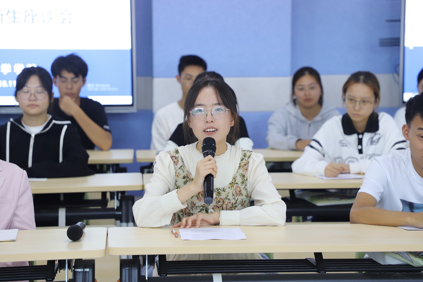 会议伊始,新生代表们分别围绕家乡特色、成长经历、入学感受、大学规划与展望等方面积极发言。其中,施叶湉、徐健文、王振宁等同学分别就大学阶段如何学好数学、数学专业的就业规划等提出问题。