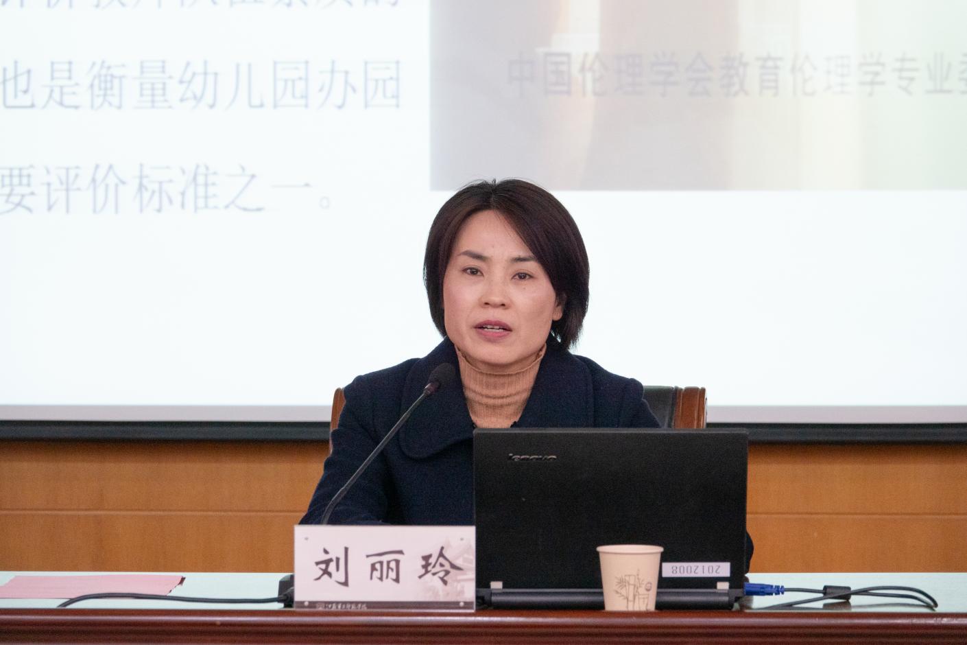 经验交流阶段,鼓楼教育局教师发展中心书记王吉群分享了鼓楼区师德师风建设的特色和成效;南京师范大学随园幼儿园刘丽玲园长以“凝心聚力强根基,以爱为源厚德育人”为题,介绍了师德建设工作经验。
