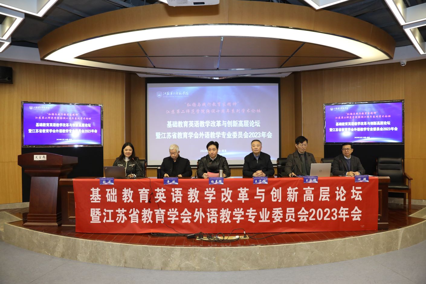 12月8日至9日,“弘扬和践行教育家精神”——江苏第二师范学院转设10周年系列学术论坛之基础教育英语教学改革与创新高层论坛暨江苏省教育学会外语教学专业委员会2023年会在江苏第二师范学院草场门校区顺利召开。本次论坛由江苏省教育学会外语教学专业委员会主办、江苏第二师范学院承办。出席论坛开幕式的有江苏第二师范学院党委常委、副校长梅景辉教授以及相关职能部门的负责人,教育部义务教育和普通高中英语课程标准修订组专家、南京大学教师发展中心主任、博士生导师王守仁教授,第二语言习得研究世界著名专家Rod Ellis教授,江苏省教育学会外语教学专业委员会第十届理事会理事长南京师范大学辛斌教授、第十一届理事会理事长南京师范大学王永祥教授,江苏省教育科学研究院何锋老师,浙江教学学刊社社长、浙江外国语学院教育学院院长陈永华教授,《英语学习》常务主编屈凌云,江苏省教育学会外语教学专业委员会第十一届理事会理事以及来自江苏各市的英语教育研究专家学者、中小学英语教研员和一线教师200余位。开幕式由江苏第二师范学院外国语学院院长张莉教授主持。