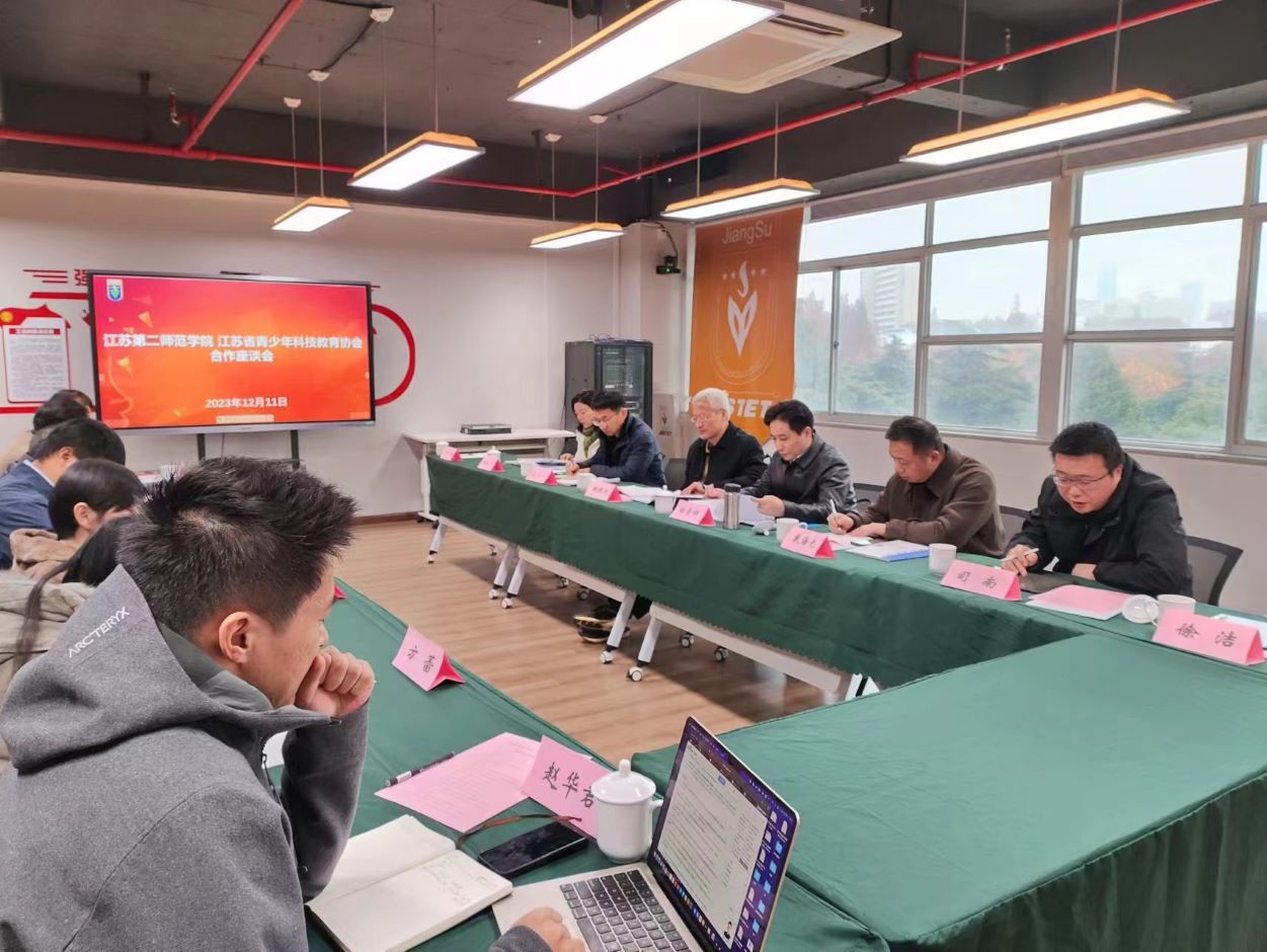 12月11日,副校长姚振标、梅景辉率队赴江苏省青少年科技教育协会洽谈教育合作。