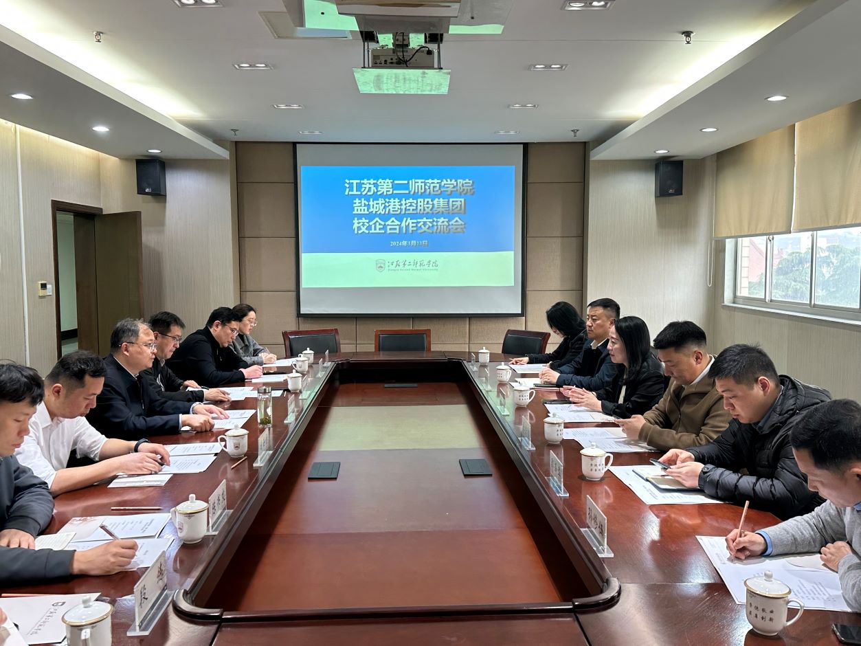 3月23日下午,江苏盐城港控股集团有限公司副总经理袁欣一行五人莅临我校开展交流合作,会议在草场门校区教科研楼505室召开。校党委书记王鲁沛接待了来访客人,党办、校办主任陈燏,发展办主任戴海光,教务处副处长王玉玺,计算机工程学院相关领导及专业教师参会,会议由党委书记王鲁沛主持。