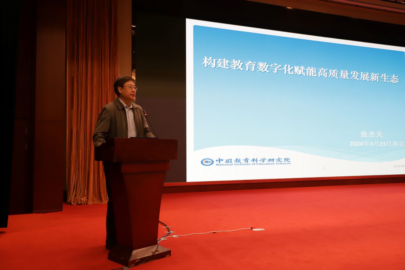 中国教育科学研究院原研究员张杰夫,江苏第二师范学院党委常委、副校长皇甫立同分别以《构建教育数字化赋能高质量发展新生态》《东西部教育数字化发展共同体建设新思路》为题作专家报告。