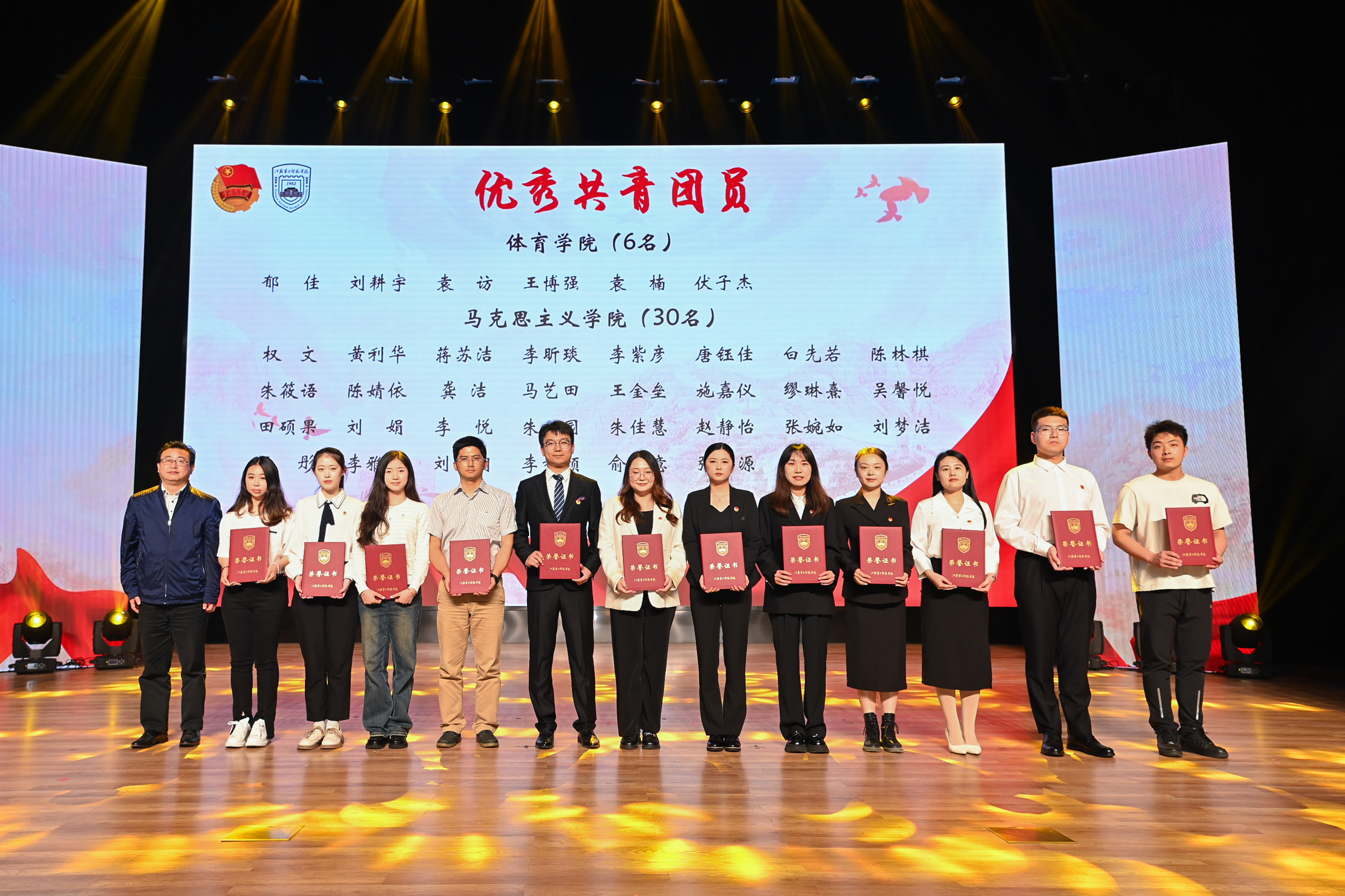 为继承和弘扬五四精神,表彰我校2023年度团学工作先进集体及个人,4月28日晚,江苏第二师范学院2024年度“五四”表彰大会在石湫校区尚美楼报告厅举行。校党委书记王鲁沛,党委副书记、副校长刘继红,党委常委、宣传部部长李安林,党委常委、组织部部长杨思贤,学工部部长、团委书记刘姝,学校相关职能部门负责人,二级学院(学部、书院)党总支书记、副书记等出席本次大会。