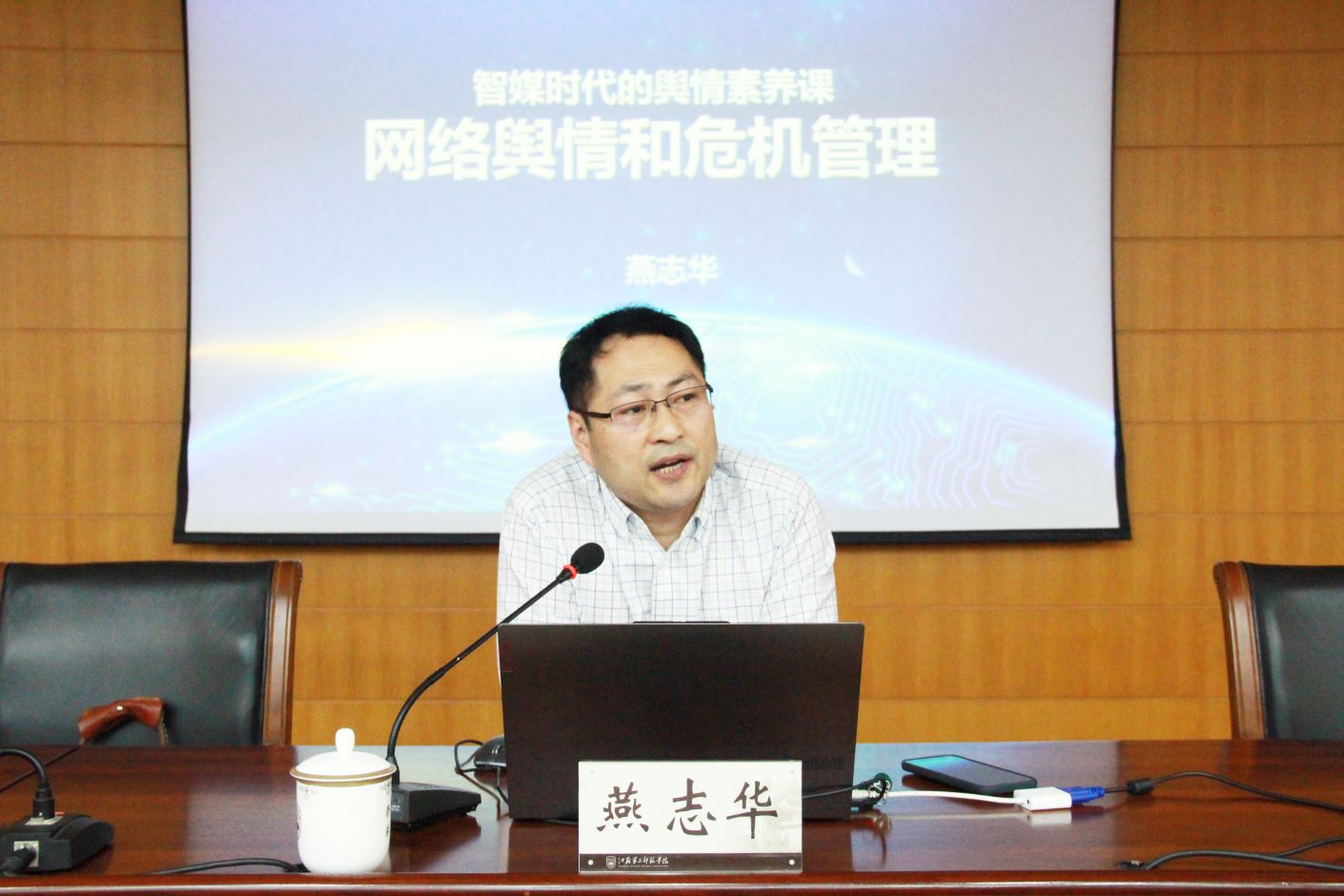 5月11日下午,我校在草场门校区511会议室举行意识形态专题培训,邀请江苏紫金传媒智库研究员、副秘书长,江苏省公关关系协会副会长、中国社科院舆情实验室舆情专业委员会委员燕志华教授作专题讲座。各二级党组织书记、辅导员、宣传员100余名同志参加了培训。培训由党委常委、党委宣传部部长李安林主持。