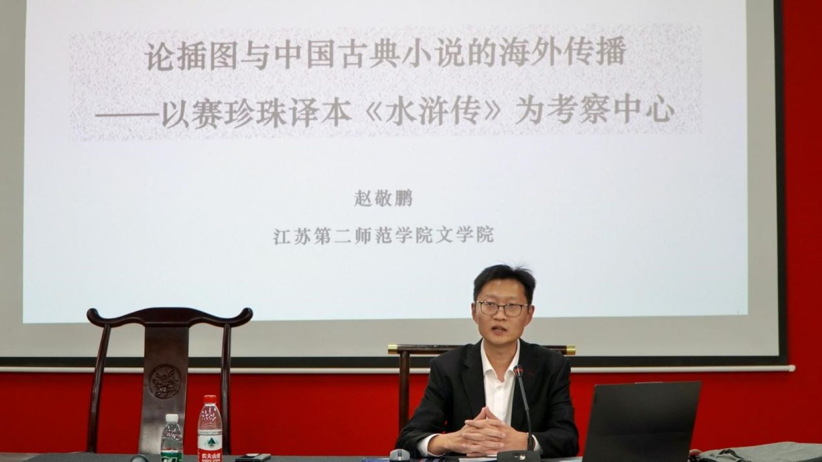 首期读书沙龙于2024年4月25日下午在尚美楼六艺大讲堂举行。文学院副院长赵敬鹏副教授以“《水浒传》的海外图像传播——从南京大学赛珍珠故居说起”为主题,从赛珍珠女士的生平经历入手,与学生深入探讨了“赛译本”插图的谱系及其装饰性、图像叙事的表演性和珂弗罗皮斯小说成像的中国传统,引领学生进一步思考如何通过图像向西方讲述中国故事。