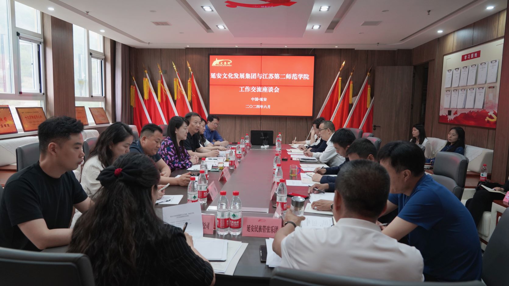 杨泽主持座谈会。他介绍,延文集团着力聚焦文化创意、文化演艺、文化旅游、文化影视传媒四大业务板块,构建数字文博、智慧文旅、沉浸式体验、互联网营销、金融与科技五大平台,打造核心竞争力,推动集团高质量发展。这次与江苏第二师范学院携手合作,对推动延文集团的创作创研、文艺演出、红色培训、人才培养、品牌建设、高质量发展等方面意义重大,同时助力延安教育事业更好发展。希望双方全面全方位深化合作,全力推动战略合作落地,优势互补、资源共享、互惠共赢。