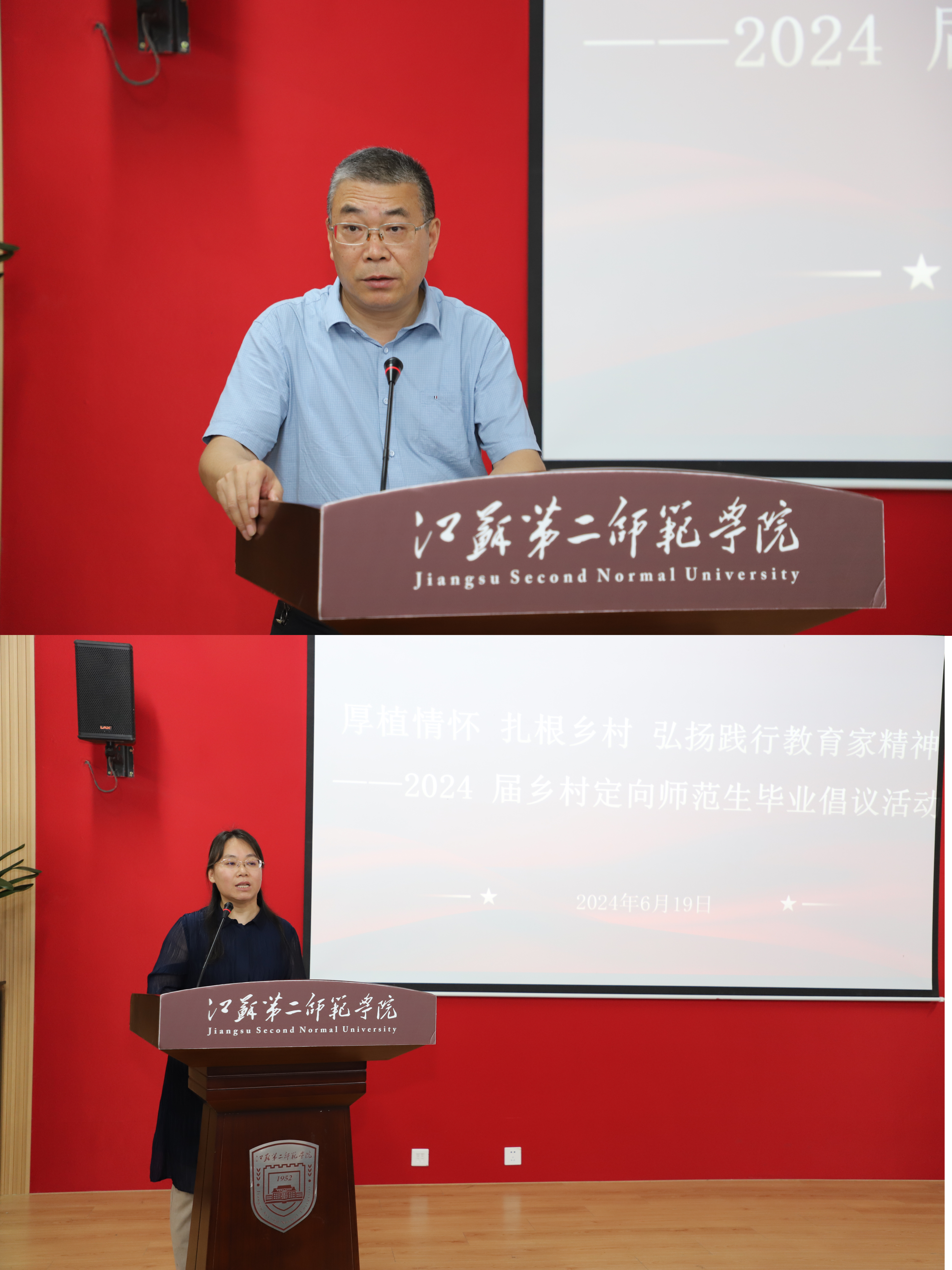 人文学部主任冯保善教授、学前教育学院院长田燕教授作为教师代表寄语毕业生,希望他们始终坚定志向,用扎实的知识功底、卓越的教育水平、高尚的师德师风,助力乡村振兴,奉献自己,点燃青春。
