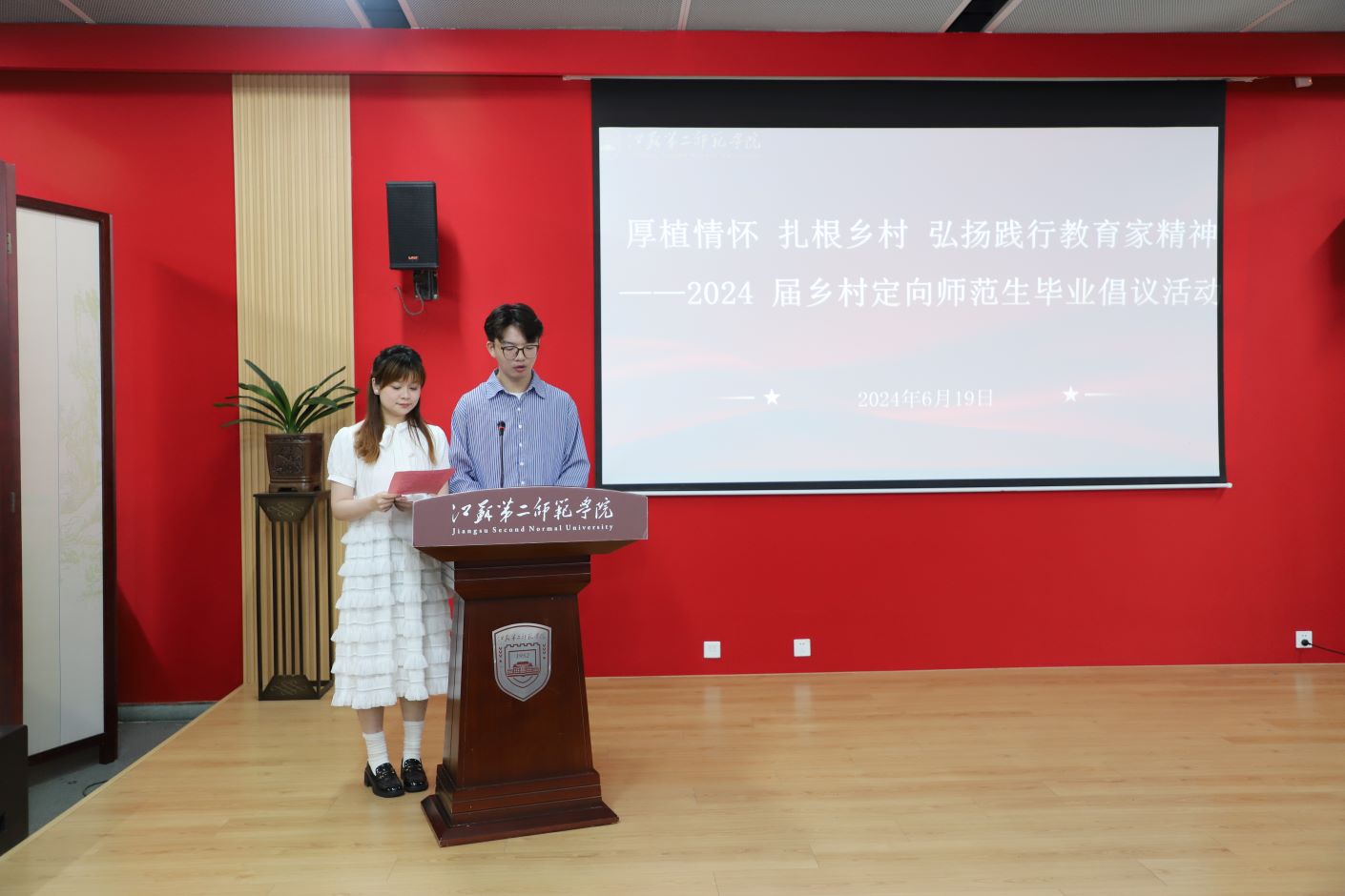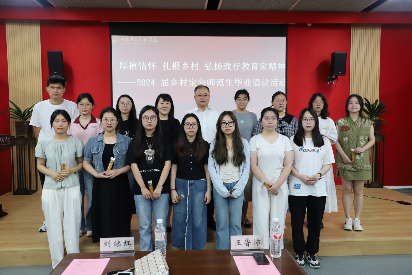 6月19日,我校在石湫校区尚美楼六艺大讲堂举行2024届乡村定向师范生毕业倡议活动。党委书记王鲁沛,党委副书记、副校长刘继红,副校长赵玉蓉出席,相关职能部门负责人,文学院、崇德书院全体2024届乡村定向师范生以及其他班级乡村定向师范生代表参加。活动由人文学部党工委书记刘莹主持。