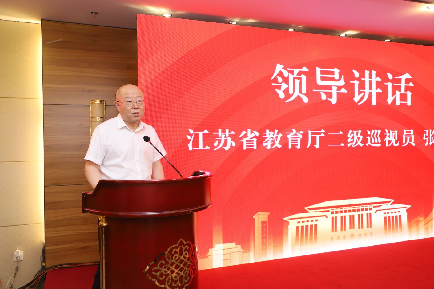 我校党委书记王鲁沛、江苏省教育厅二级巡视员张鲤鲤在开幕式上致辞,党委常委、副校长皇甫立同主持开幕式。