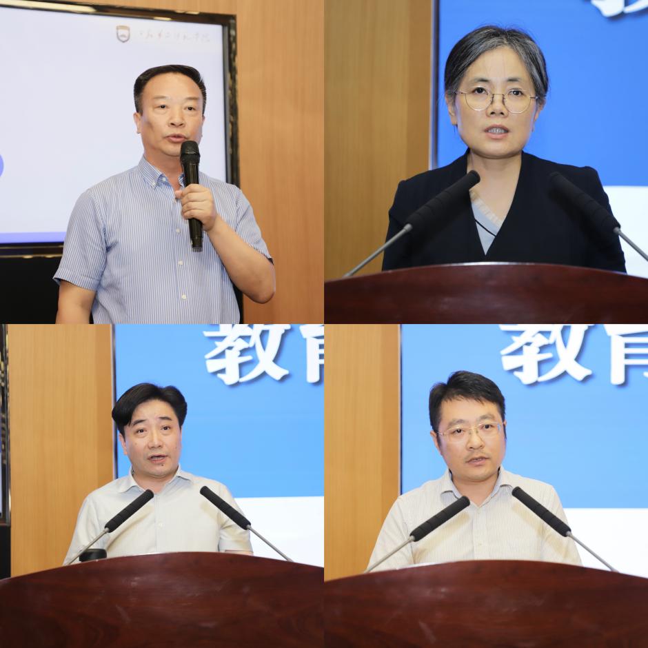 校领导刘继红、崔燕、姚振标、皇甫立同、赵玉蓉、梅景辉、花书贵分别结合分管工作,以《以铸魂腾飞计划为统领,不断提高学生工作在人才培养中的贡献度》《如何完善监督体系建设,提高监督质效,营造风清气正环境》《部门联动强化服务,赋能学校高质量发展》《新质心智奏响教师教育最强音——弘扬践行教育家精神二师样本》《用好考核“指挥棒”,提振干事“精气神”——以高质量考核助推事业高质量发展》《强化有组织学科建设在学校高质量发展中的龙头地位,提升有组织科研对学校发展的贡献度》《以评促建,推进专业内涵建设和人才培养模式改革——加快人才培养质量提升》为题作了主题报告,结合学校实际提出了下一步的工作思路和举措。