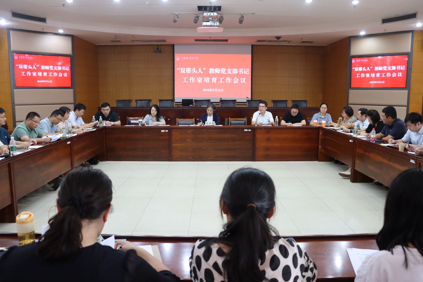 9月11日下午,“双带头人”教师党支部书记工作室培育工作会议在草场门校区教科研楼511会议室举行。校党委常委、副校长赵玉蓉出席会议并讲话。二级学院党总支书记、教师党支部书记、基层党组织委员,相关职能部门负责人参加会议。会议由党委常委、组织部部长杨思贤主持。