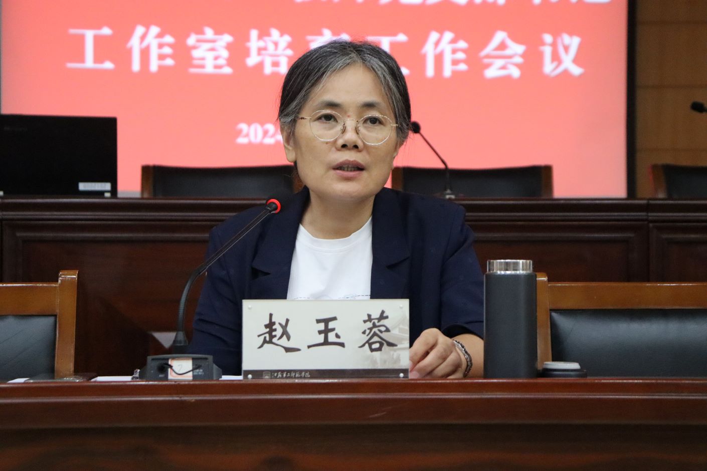 赵玉蓉作总结讲话。她指出,“双带头人”教师党支部书记工作室培育建设工作是学校党委开展党建“双创”和“对标争先”建设的重要内容,各基层党组织要提高政治站位,加强组织领导,切实把政治优势、组织优势转化为事业发展的制胜优势,形成有效的“双带头人”教师党支部书记培育工作机制,为全国“双带头人”工作室的创建和培育打下坚实基础。她强调,各“双带头人”工作室的负责人要坚持对标对表,强化支部建设,践行立德树人职责使命,重点围绕建设指标,创新工作方法,创建平台载体,创立典型示范,着力发挥党支部战斗堡垒作用和党员先锋模范作用,推动基层党建工作与教学科研等工作双促进双提高,通过总结凝练和经验推广,引领带动学校党建工作质量全面提升。