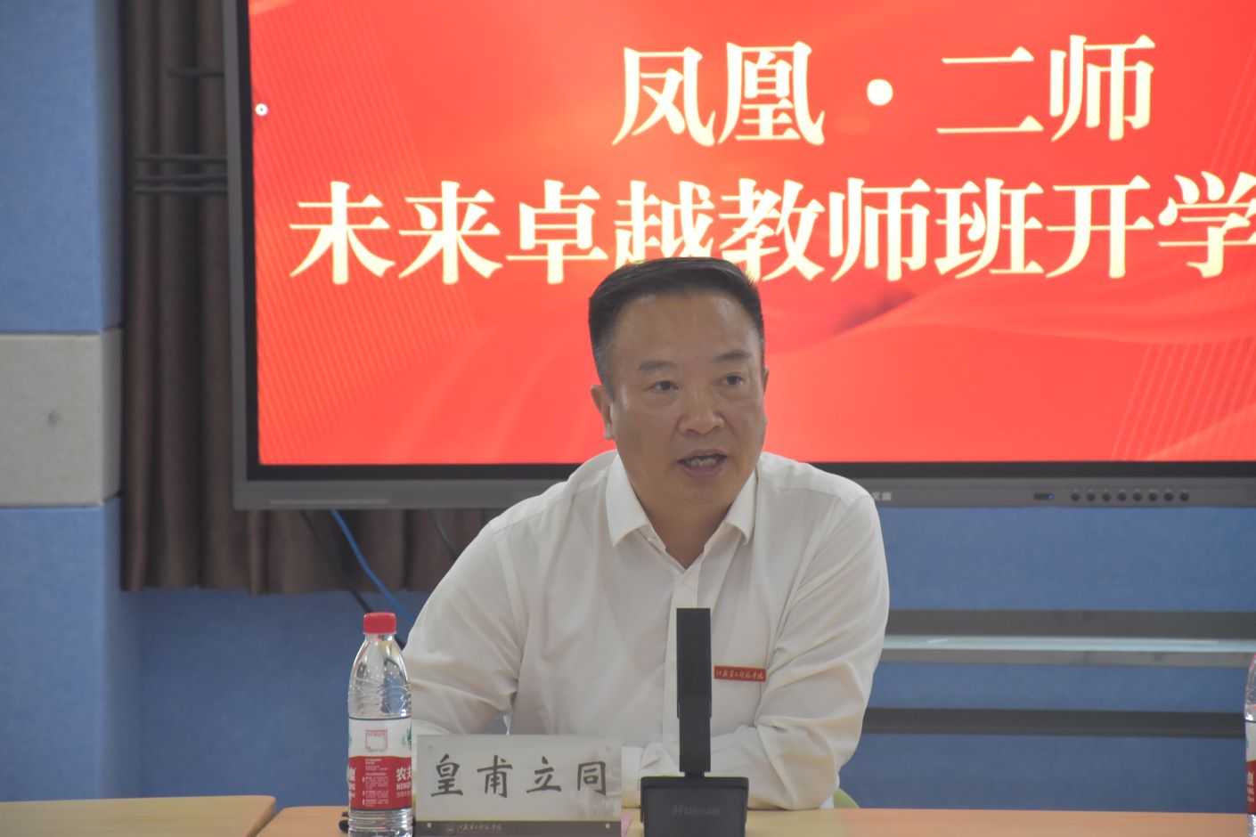 皇甫立同发表讲话,以“遇见”“期望”“圆梦”三词六字展开叙述,勉励同学们能够在二师遇见未来、适应未来、成就未来;启发同学们深刻领悟“凤凰”的多重含义,坚定目标,矢志不渝,做身心健康、人格健全的人,做仰望星空、脚踏实地的人;清晰认识该班既是舞台,也是平台,更是擂台,在追梦圆梦的路上务必多读书读好书,将宏伟的规划图变为绚丽的实景图。