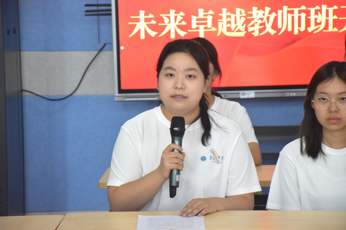 学生代表、小学教育专业袁润希同学汇报了自己加入“未来卓越教师班”的感受以及对以后学习的规划,并表示要坚守初心,在学习与实践当中,擦亮底色,面向未来,追求卓越,努力成长为未来的卓越教师。