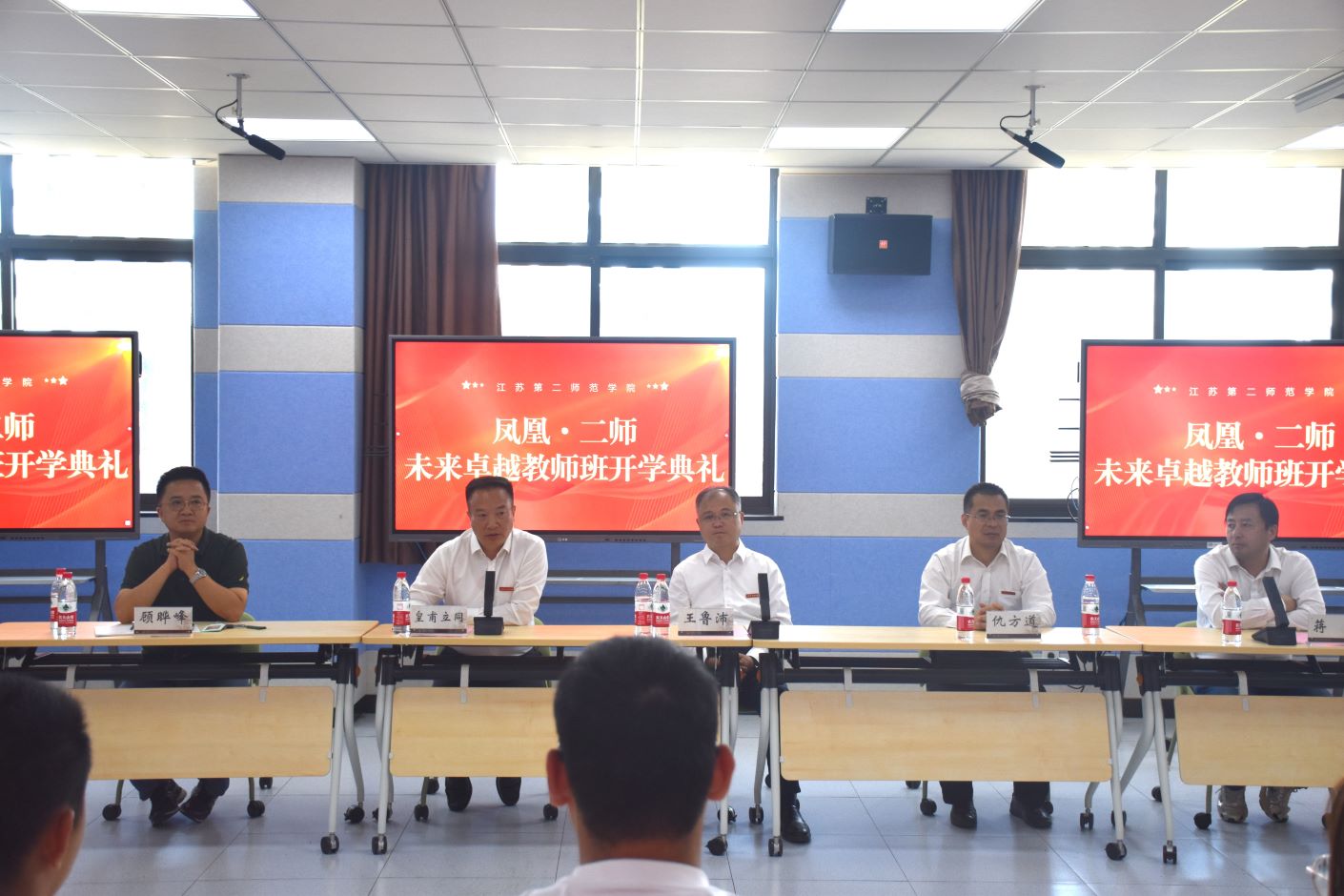 为强化教育家精神引领,推动高质量师范教育建设,培养新时代高素质专业化教师队伍,切实落实我校《新时代师范生培养实施方案》中提出的“培养具有深厚卓越教师潜质的优秀教师”目标。9月22日上午,教育科学学院、崇德书院在石湫校区举行凤凰•二师“未来卓越教师班”开学典礼。我校党委书记王鲁沛,党委常委、副校长皇甫立同,教务处处长仇方道,质评处处长、教师发展中心顾晔峰,(教育学部)教育科学学院院长蒋波,崇德书院党总支副书记王晶,教育科学学院专任教师奚润,崇德书院辅导员卢园园以及“未来卓越教师班”全体同学出席仪式,教育科学学院党总支书记丁莹主持。