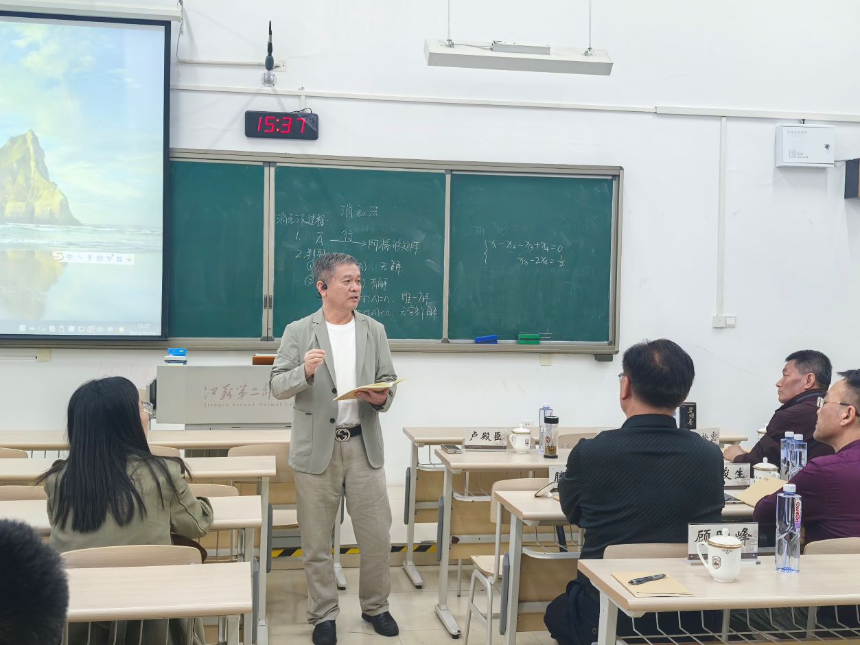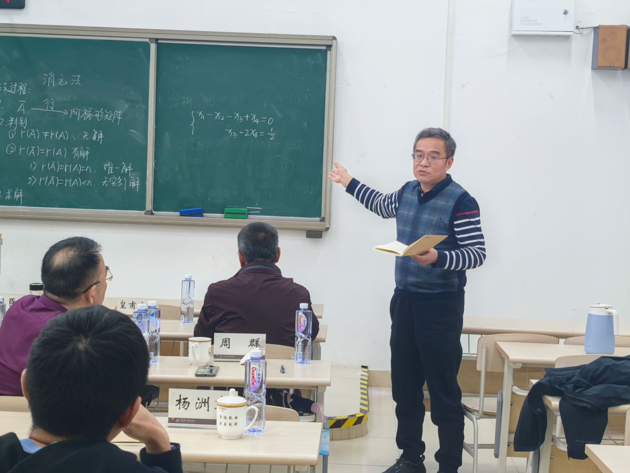 10月16日下午,学院特邀南京信息工程大学数学与统计学院统计系副主任杨洲木老师来校开展《大学数学》同课异构交流研讨活动。东南大学王栓宏教授、江苏大学卢殿臣教授、南京信息职业技术学院骈俊生教授、南京工业大学浦江学院基础部主任滕加俊教授应邀作点评指导。党委常委、副校长皇甫立同,原统战部部长周群,数学科学学院全体教师参加活动。活动由副院长陈波主持。