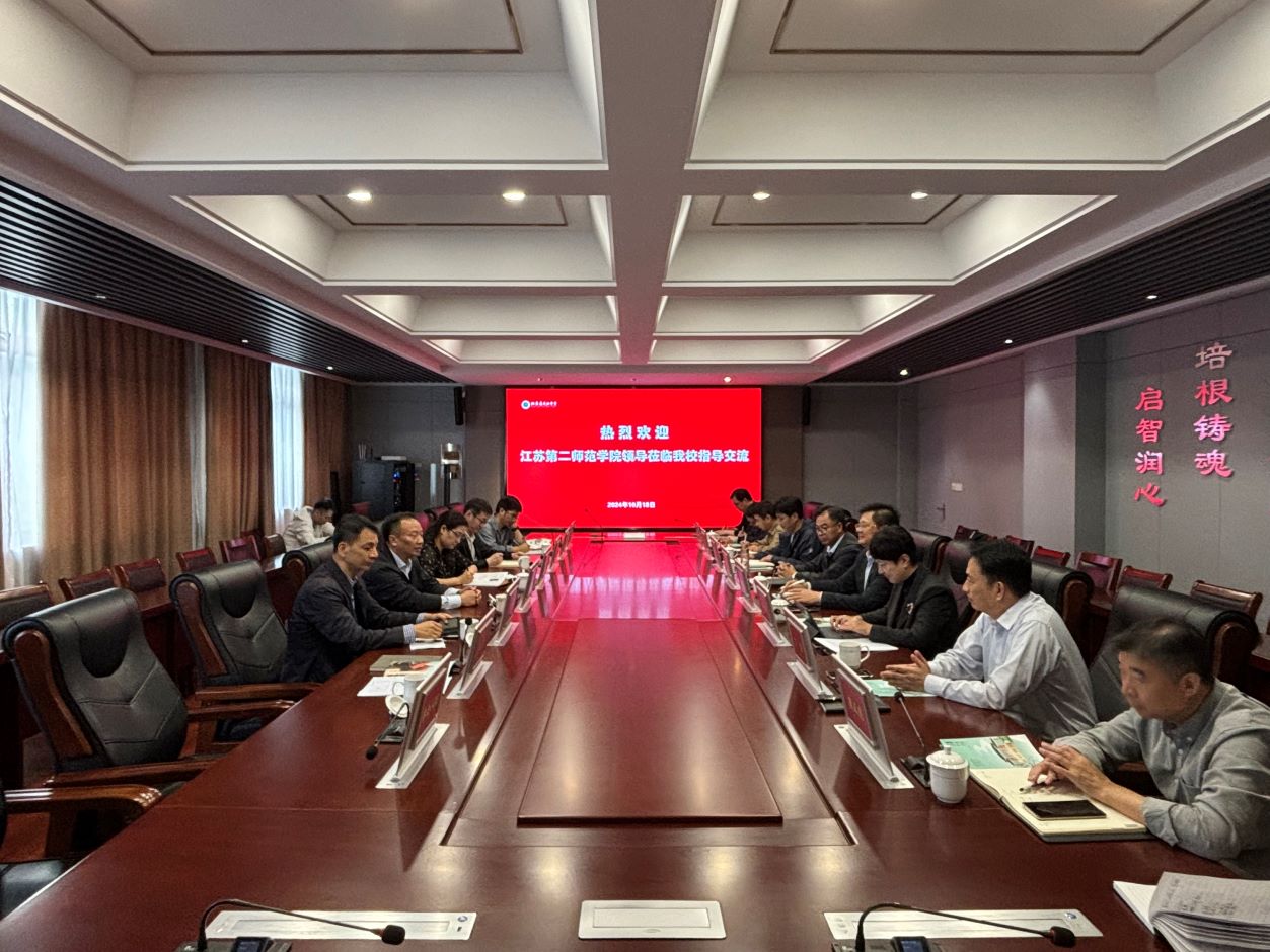 陈欣对我校一行的到来表示热烈欢迎,并介绍了学校办学历史、新校区建设、办学特色、师资队伍和校本课程建设、人才培养理念及未来发展规划等。他充分认可江苏第二师范学院的办学实力和教育教学质量,感谢江苏二师为江苏省基础教育做出的贡献,表示将进一步加大我校在清江中学的宣传力度,持续为江苏二师推介输送优质生源。