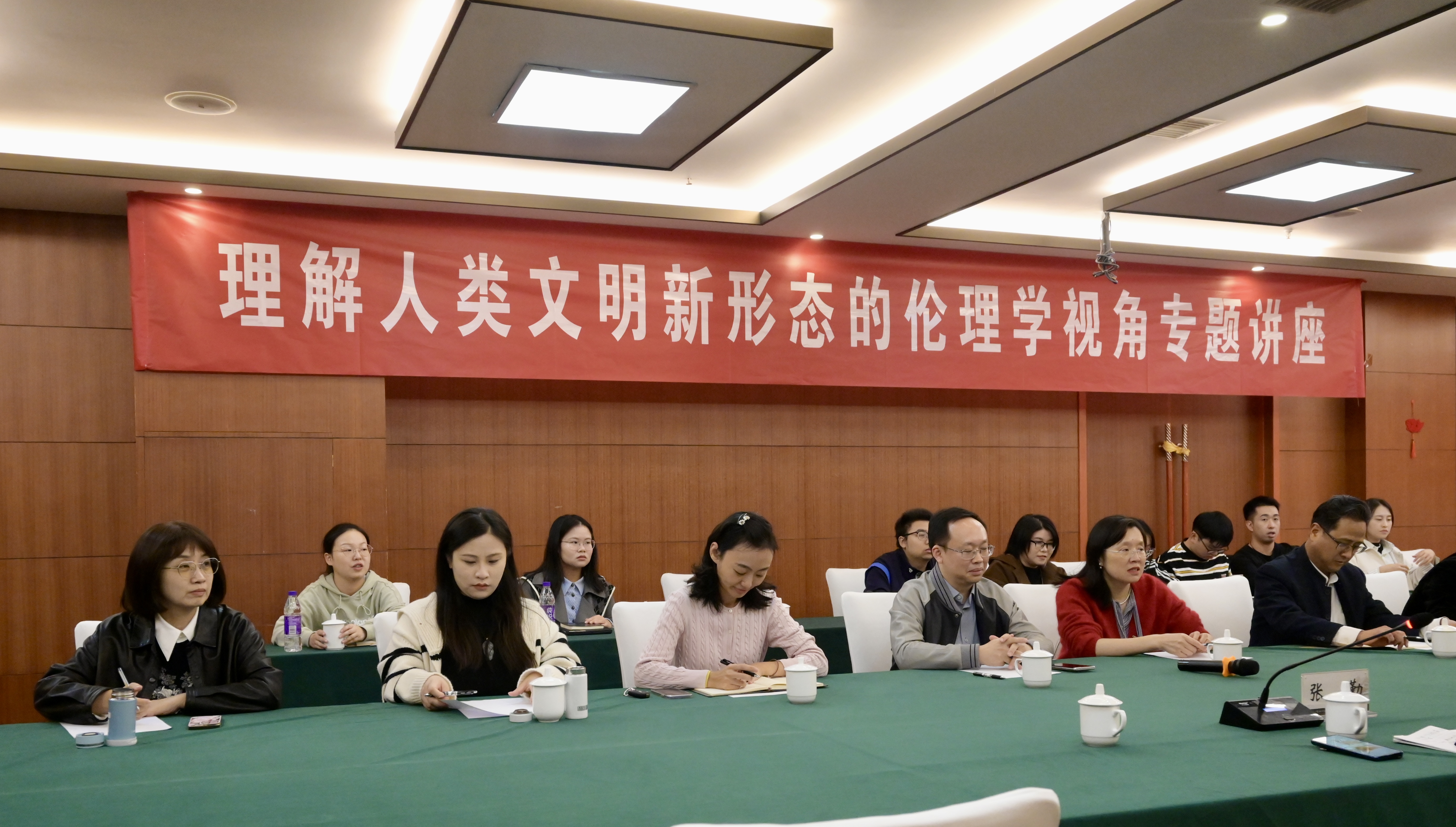 10月19日下午,应我校党委教师工作部、新时代师德教育研究中心邀请,中国伦理学会会长、《道德与文明》杂志主编孙春晨教授为我校师生作题为《理解人类文明新形态的伦理学视角》学术报告。此次报告为本年度研究中心举办的学术系列活动之一,中心学术委员会副主任张勤教授出席并主持,河海大学、上海经贸大学、盐城师范学院等兄弟院校师生代表应邀参会。