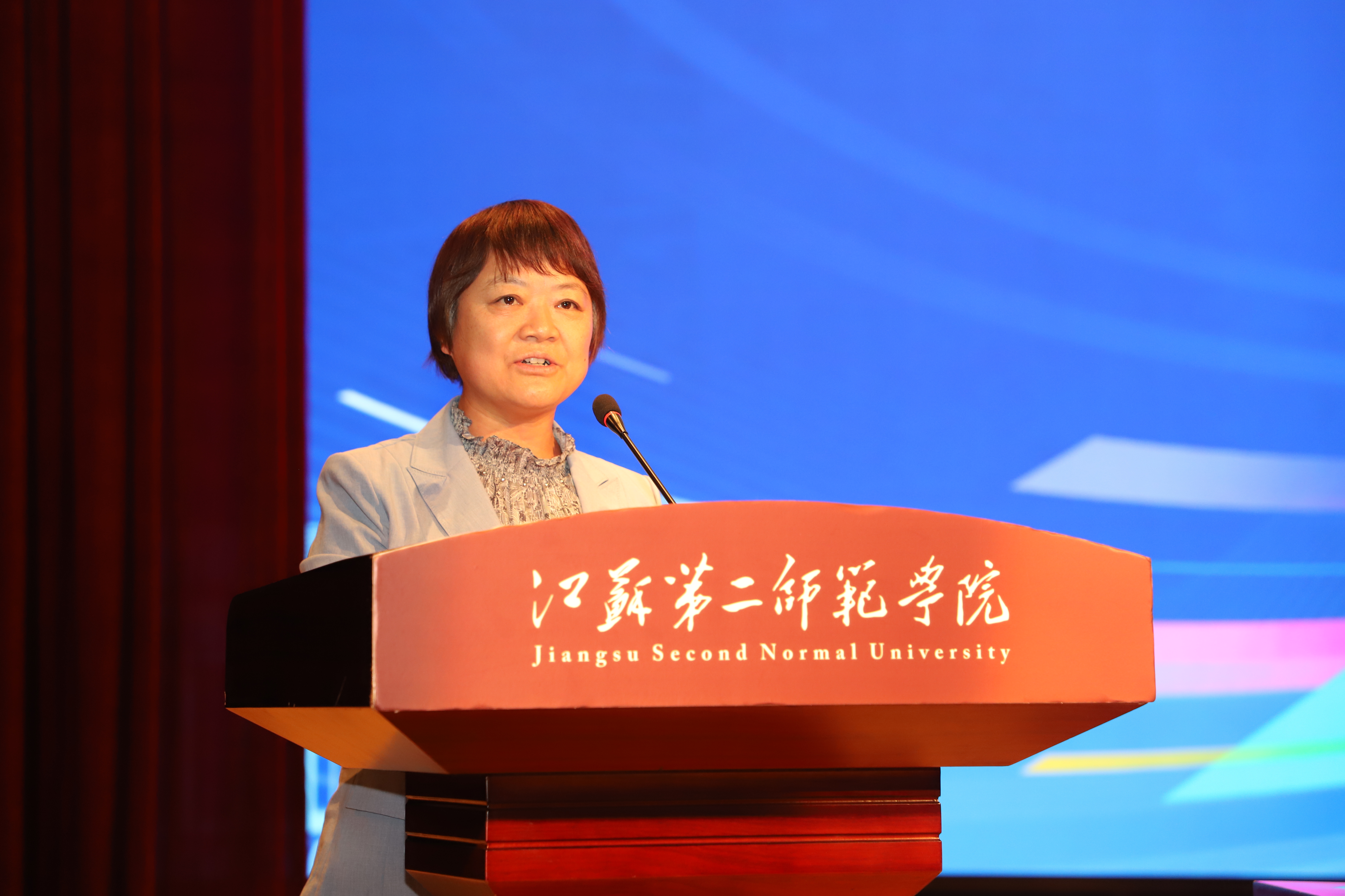 朱大梅在讲话中指出,江苏省师范生教学基本功大赛是深入推进我省教师教育发展改革、提升新师资培养质量的重要手段,也是检验我省师范人才培养成果、搭建交流学习平台的有效方式。她提出三点希望:一是希望比赛组织工作规范有序、客观公正;二是希望参赛选手认真备赛、赛出水平;三是希望各校在师范生培养中要营造刻苦钻研学科知识、苦练教学基本功的浓厚氛围,不断促进教师教育改革。