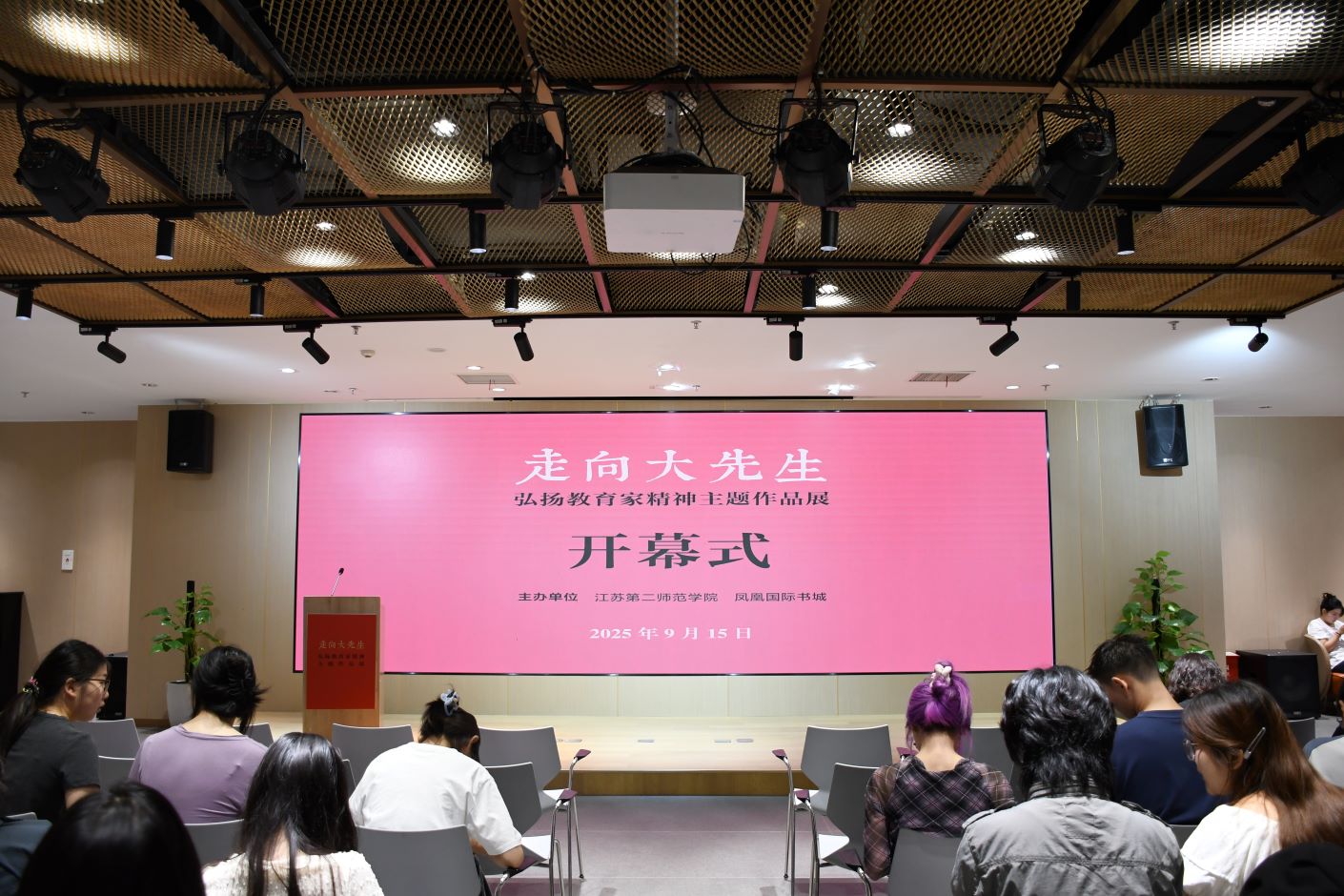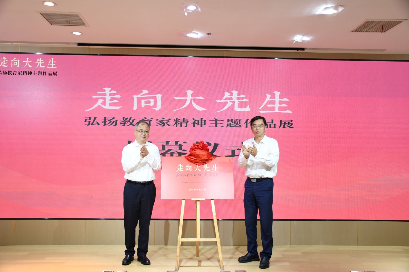 9月15日上午,由我校和凤凰国际书城共同主办的“走向大先生——弘扬教育家精神主题作品展”在江苏凤凰美术馆顺利开幕。党委书记王鲁沛,党委常委、副校长皇甫立同、赵玉蓉出席开幕式。我校师生代表参加开幕式。江苏凤凰出版传媒集团有限公司党委书记、董事长章朝阳等嘉宾应邀出席。赵玉蓉主持开幕式。