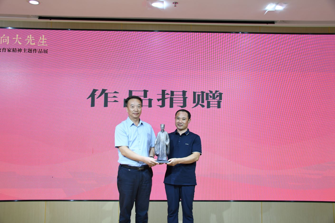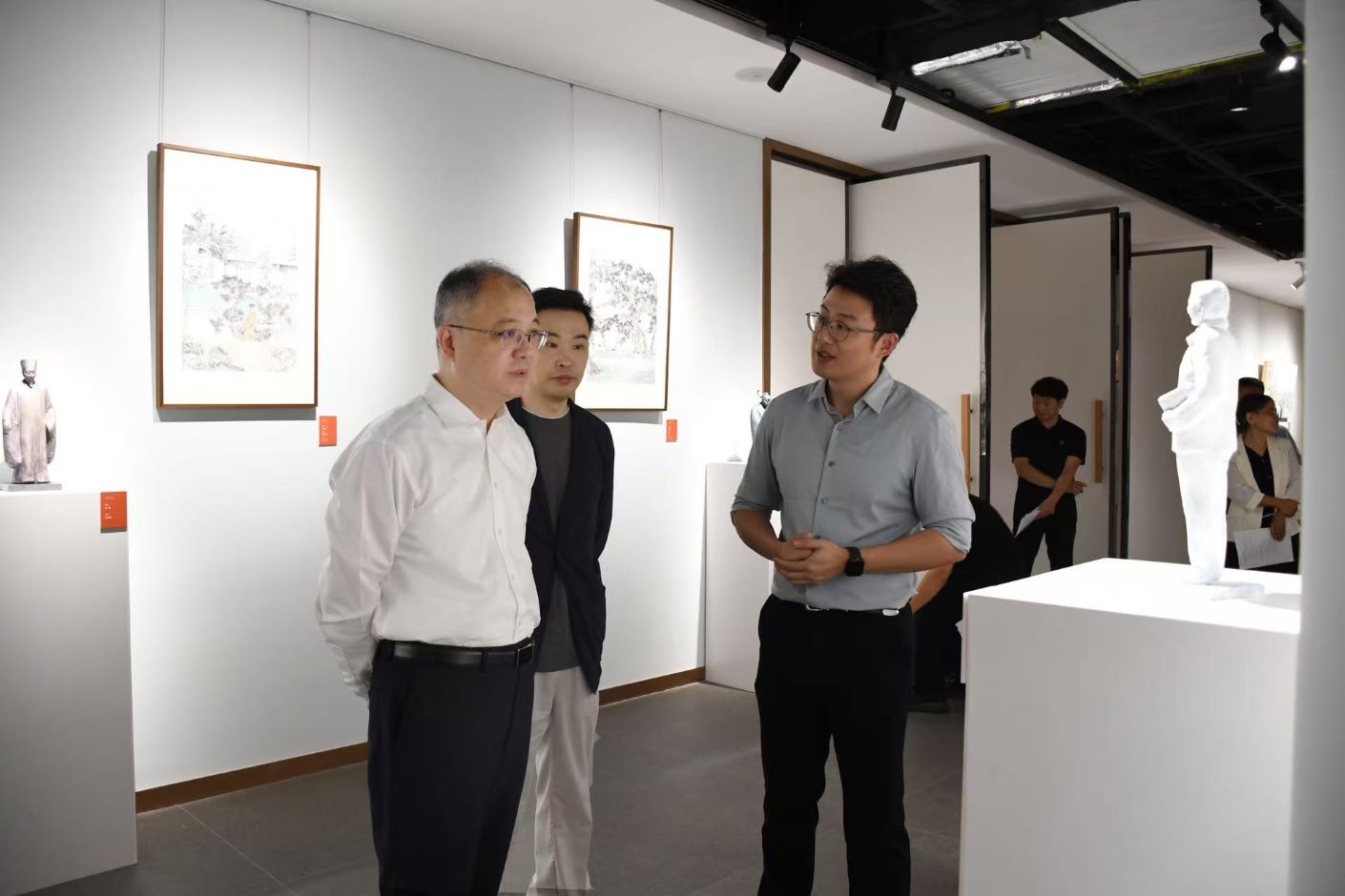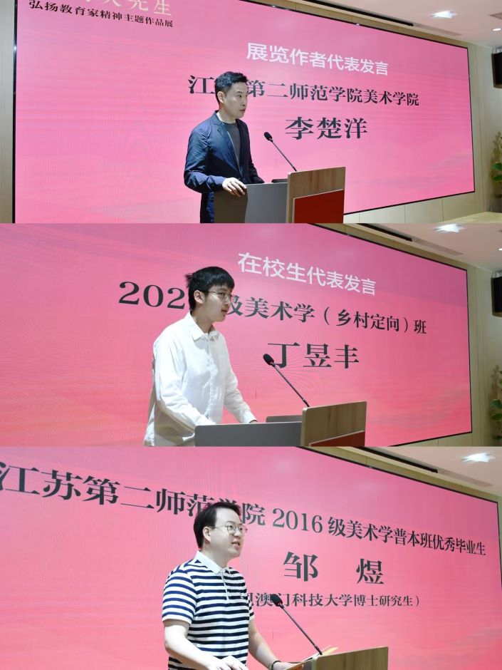 本次展览共展出我校李楚洋、谢渊和陈维三位青年教师创作的68幅作品,涵盖绘画、雕塑、篆刻等多种艺术形式,从不同角度生动展现了教育工作者的风采,诠释了教育家精神的内涵。