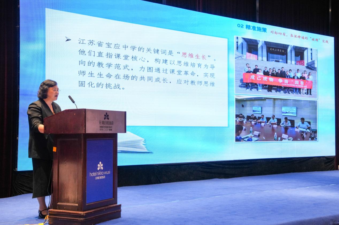 如东县马塘中学党委书记葛家梅以《从“解决问题”到“问题解决”》为题作汇报,聚焦农村高中教师队伍发展的现实困境与系统破解。团队在教育家精神引领下,以“项目、平台、场域”三维攻坚为路径,系统应对教师研究力不足、骨干力量薄弱、青年教师认同感不足等结构性难题。通过课题研究驱动课程改革,以多维平台促进教师成长,以“晓塘文化”涵养教育情怀,探索形成了乡村学校教师队伍可持续发展的“马塘样本”,推动教师队伍建设由个体突破走向机制保障,为县域高中高质量发展提供了生动范式。