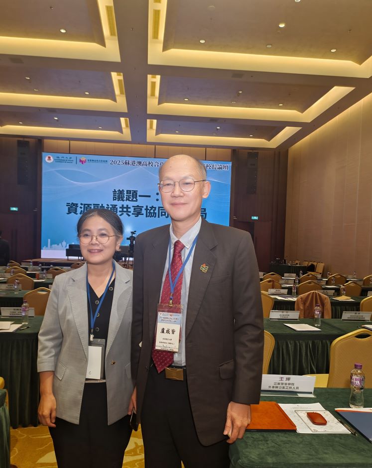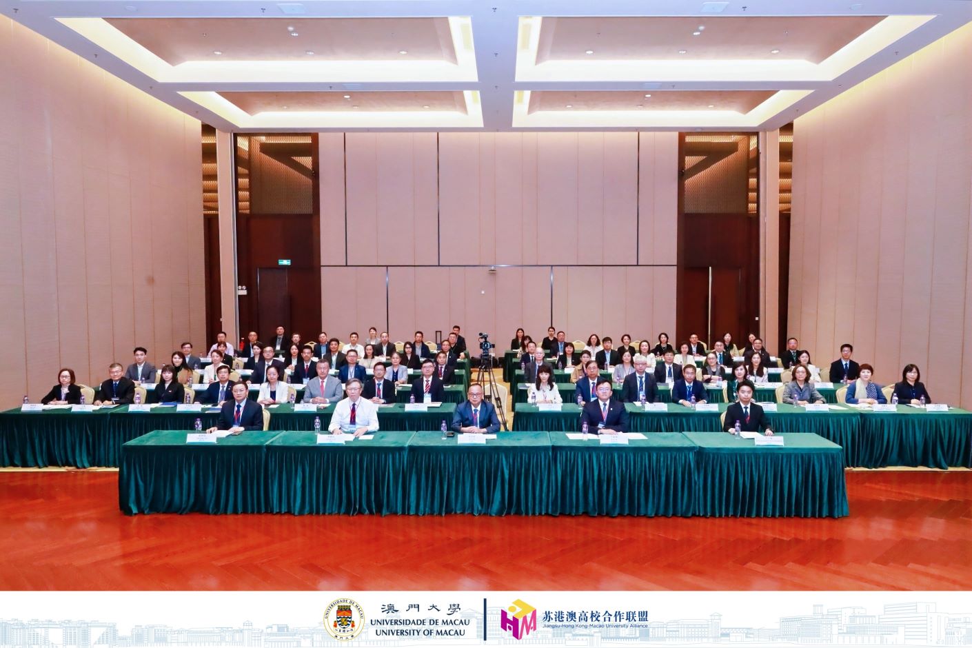 2025年10月31日,“高校联盟聚合力 开放共享促多赢”2025苏港澳高校合作联盟常务理事会、理事大会暨校长论坛在澳门大学举行,苏港澳三地50余所高校代表参会。我校党委常委、副校长赵玉蓉受邀出席并在“资源融通共享 协同拓新局”议题中发言。港澳台事务办公室主任梁婧玉陪同参会。