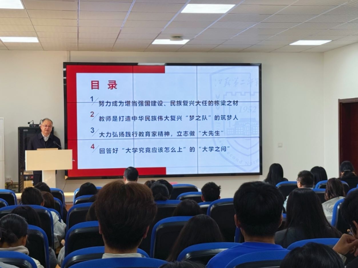 青年之于国家,意味着未来,师范教育之于民族复兴,意味着使命。王鲁沛勉励所有师范生应将教育家精神的深刻内涵内化为精神指引,矢志不渝、挺膺担当,在实践中成长为有理想、敢担当、能吃苦、肯奋斗的新时代好青年。