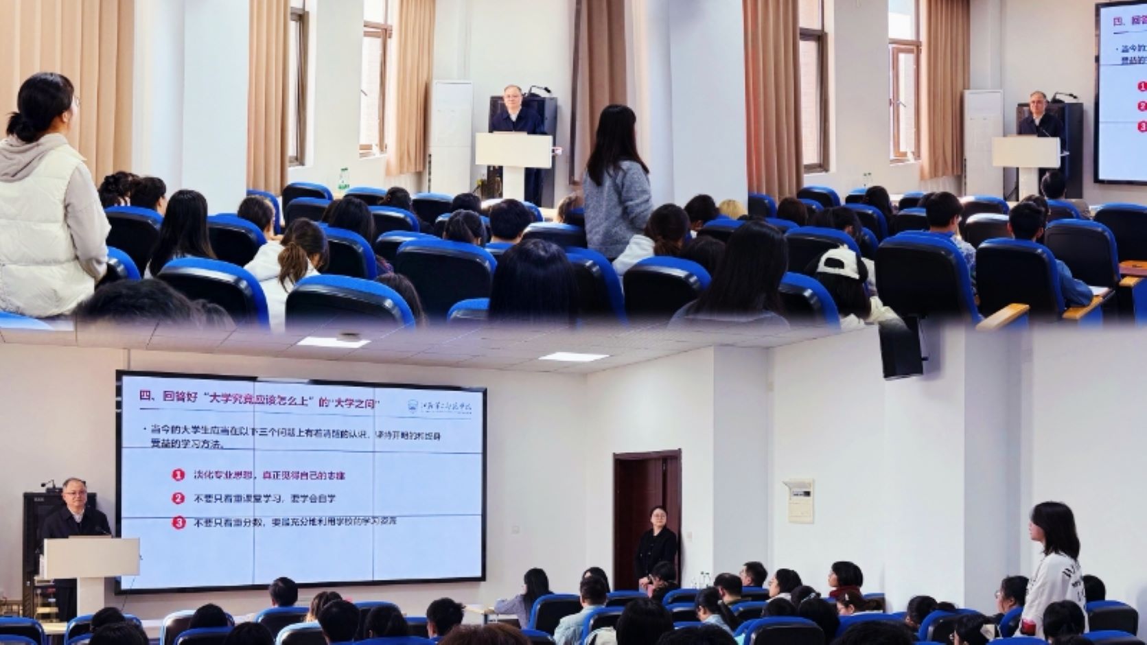现场的互动交流中,王鲁沛特别强调了大学究竟应该怎么上这一核心问题。他认为,学生应当树立志趣而非仅限于专业选择,培养自学能力而非依赖课堂灌输,充分利用学校资源而非沉溺于分数追逐。王鲁沛针对同学们提出的职业生涯规划、人生发展方向等问题给予了耐心细致的回应,帮助同学们在理论思考与实践困惑之间找到了有效的连接点。